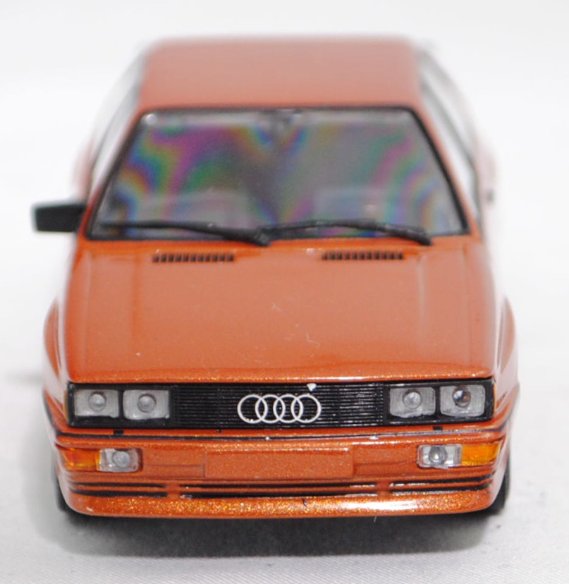 Audi quattro (B2, Typ 85Q, VFL (Vorfacelift), Modell 1980-1982), zobelbraun metallic (Verkaufskennzeichen L4, Lacknummer LY8V), Minichamps, 1:43, PC-Box (Außenspiegel links fehlt)