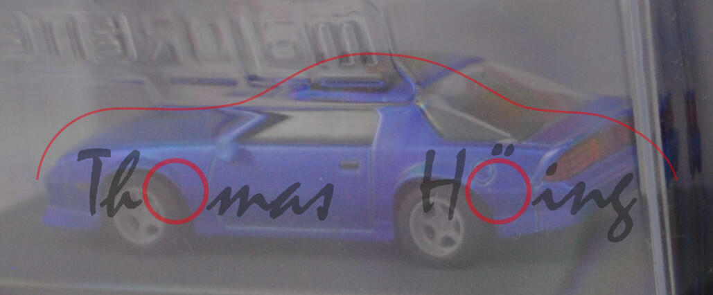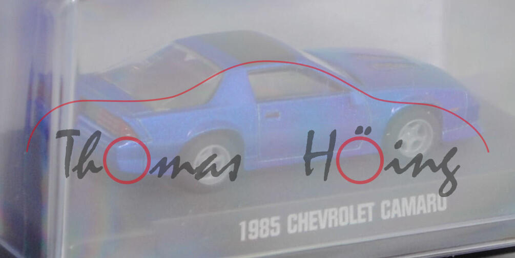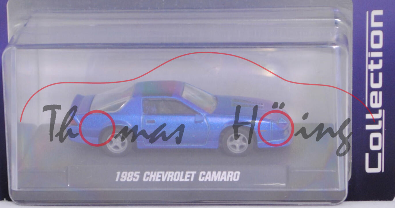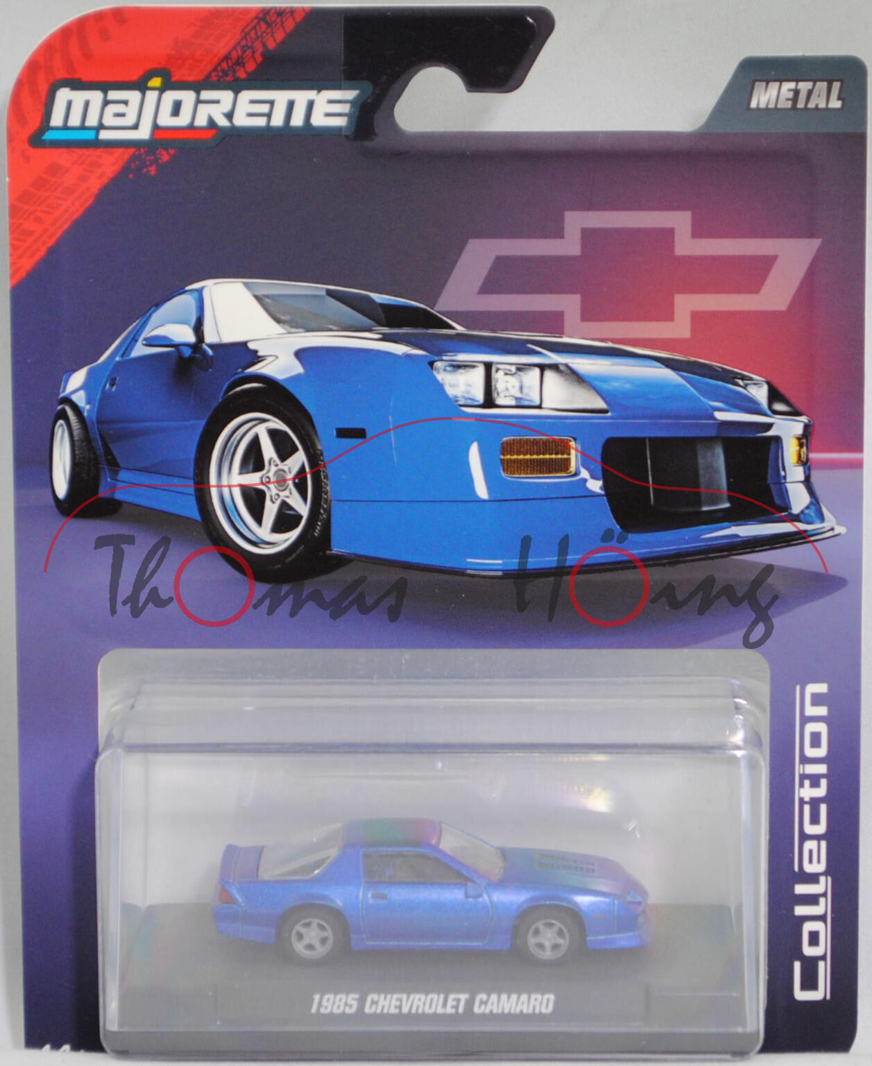 Chevrolet Camaro Z28 (Modell 1984-1985), signalblaumetallic (vgl. bright blue metallic beim Original), majorette, 1:64, PC-Box im Blister (Collection)