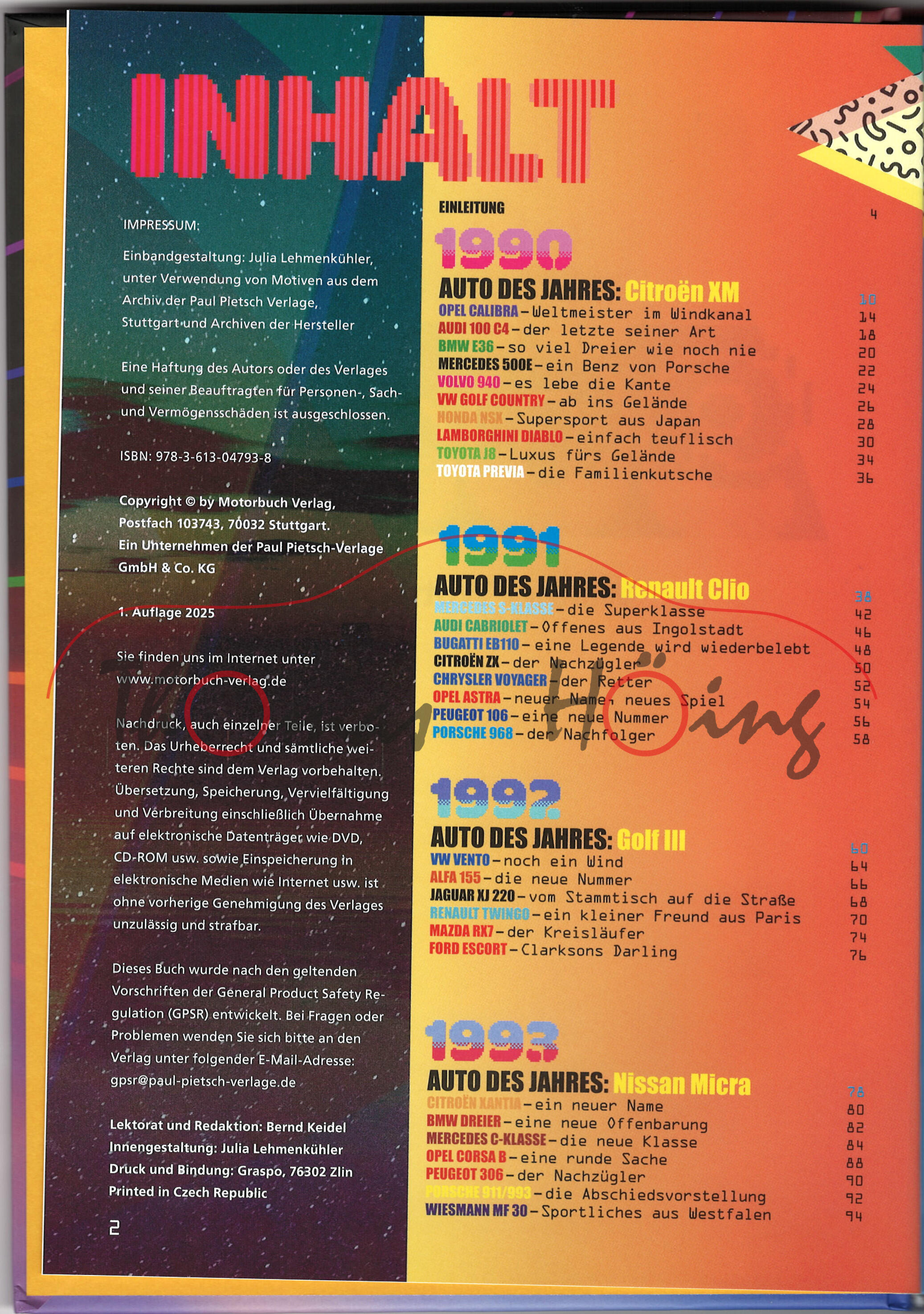 Die 90 besten Autos der 90er - Die ultimative Freiheit auf vier Rädern!, Inhalt: Einleitung / Auto des Jahres 1990: Citroen XM / Opel Calibra - Weltmeister im Windkanal / Audi 100 C4 - der letzte seiner Art / BMW E36 - so viel Dreier wie noch nie / Mercedes 500E - ein Benz von Porsche / Volvo 940 - es lebe die Kante / VW Golf Coutry - ab ins Gelände / Honda NSX - Supersport aus Japan / Lamborghini Diablo - einfach teuflisch / Toyota J8 - Luxus fürs Gelände / Toyota Previa - die Familienkutsche / Auto des Jahres 1991: Renault Clio / Mercedes S-Klasse - die Superklasse / Audi Cabriolet - Offenes aus Ingolstadt / Bugatti EB110 - eine Legende wird wiederbelebt / Citroen ZX - der Nachzügler / Chrysler Voyager - der Retter / Opel Astra - neuer Name, neues Spiel / Peugeot 106 - eine neue Nummer / Porsche 968 - der Nachfolger / Auto des Jahres 1992: Golf III / VW Vento - noch ein Wind / Alfa 155 - die neue Nummer / Jaguar XJ 220 - vom Stamtisch auf die Straße / Renault Twingo - ein kleiner Freund aus Paris / Mazda RX7 - der Kreisläufer / Ford Escort - Clarksons Darling / Auto des Jahres 1993: Nissan Micra / Citroen Xantia - ein neuer Name / BMW dreier - eine neue Offenbarung / Mercedes C-Klasse - die neue Klasse / Opel Corsa B - eine runde Sache / Peugeot 306 - der Nachzügler / Porsche 911/993 - die Abschiedsvorstellung / Wiesmann MF 30 - Sportliches aus Westfalen / Auto des Jahres 1994: Ford Mondeo / Opel Tigra - Weltmeister im Windkanal / Audi A4 - neuer Typ / Audi A8 - der Aufstieg geht weiter / Chevrolet - das Comeback / Lancia Kappa - das neue Flaggschiff / Audi RS2 - der Schnelltransporter / BMW Siebener - Navitator-Premiere / BMW Dreier Compact - Vorstoß in die Golfklasse / Eurovans - französisch-italienisches Quartett / Ferrari F355 - hart, aber herzlich / Toyota RA4 - seiner Zeit voraus / Auto des Jahres 1995: Fiat Punto / BMW E39 - dezenter Nachfolger / Mercedes E-Klasse - die mit den vier Augen / Fiat Barchetta - ein Boot für die Straße / VW Sharan / Ford Galaxy - Köln-Wolfsburger Duett / BMW Z3 - ein Roadster für James / Lotus Elise - eine leichte Legende / Auto des Jahres 1996: Fiat Bravo / Skoda Octavia - alter Name, neuer Erfolg / Mercedes SLK - super, der Kurze / Rover MG F - der letzte Versuch / Ford Ka - die Knutschkugel / Porsche Boxster - der Retter / Jaguar XK8 - E-Type, die Zweite / Auto des Jahres 1997: Renault Scenic / Smart - ein Zwerg für die Stadt / Mercedes-Benz A-Klasse - und dann kam der Elch / Seat Arosa - Sparmeister aus Spanien / Lincoln Navigator - Luxus für SUV / Toyota Prius - die Kraft der zwei Herzen / Peugeot 406 Coupé - der Beau / Land Rover Freelander - der kleine Range / Auto des Jahres 1998: Alfa Romeo 156 / Audi TT - von Kalifornien nach Ingolstadt / VW New Beetle - für Nostalgiker / Maserati 3200 GT - Luxus à la Giugiaro / VW Bora - wieder ein Wind / VW Lupo - der kleine Wolf / Alfa 166 - der letzte seiner Art / Mercedes S-Klasse - neue Spitze / Rolls Royce Silver Seraph - endlich was Neues / Rover 75 - die letzte Nummer / Suzuki Jimmy - klein, aber oho / Auto des Jahres 1999: Ford Focus / Opel Speedster - die Elise machts möglich / Mercedes CL - ein E-klassiges Coupé / Ferrari 360 Modena - der Nachfolger / Honda S2000 - Kraftpaket aus Japan / Jaguar S-Type - Blick zurück / BMW X5 - die Antwort aus Bayern / Fiat Multipla - der Verkannte, Register / Bildnachweise, Walther Wuttke, Motorbuch Verlag, 1. Auflage 2025, 224 Seiten, 500 Illustrationen, Format 170 x 240 mm, ISBN 978-3-613-04793-8 (EAN 9783613047938)