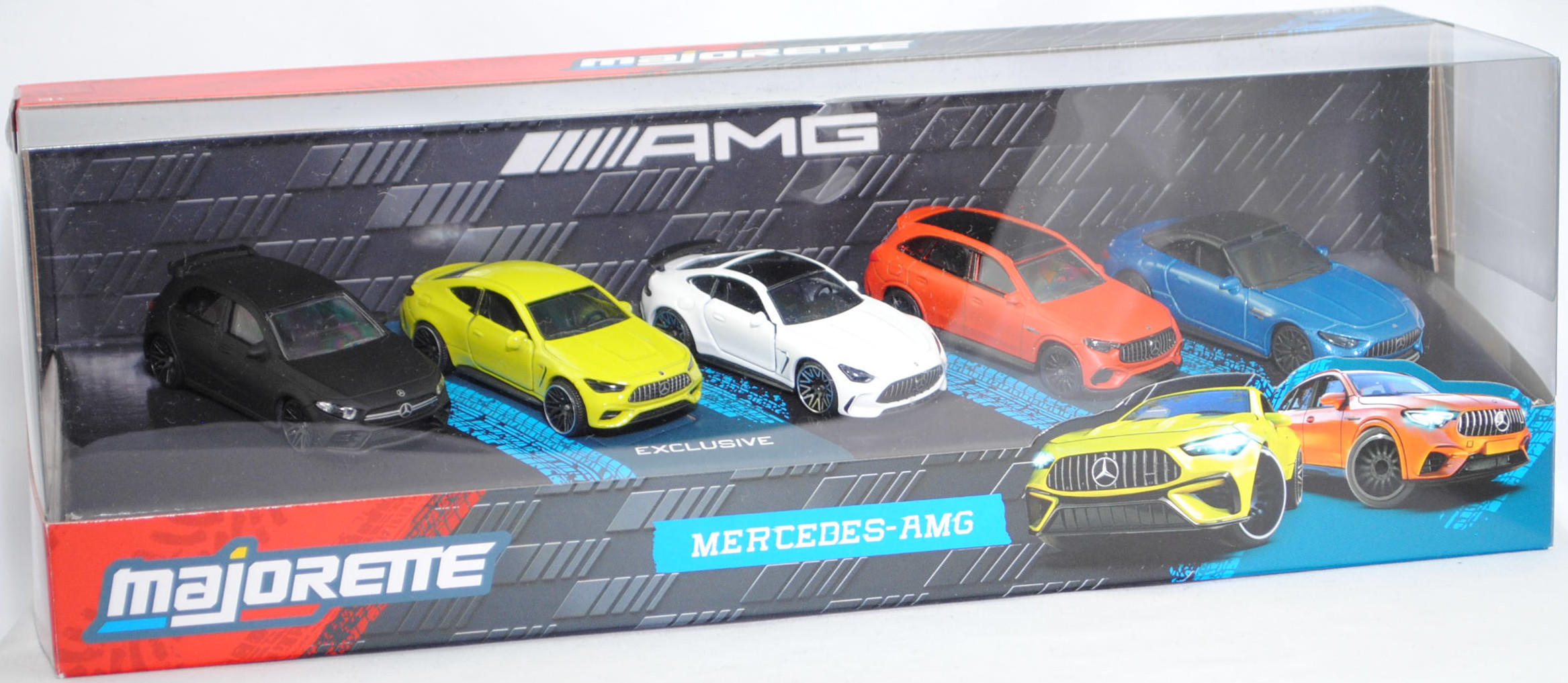 Giftpack Mercedes-AMG (5 Modelle): A 35 4Matic + CLE 53 4Matic+ + GT 63 4Matic+ + GLC 63 S E PERFORMANCE Premium + SL 63 4MATIC+, majorette, mb (EAN 3467452077283)