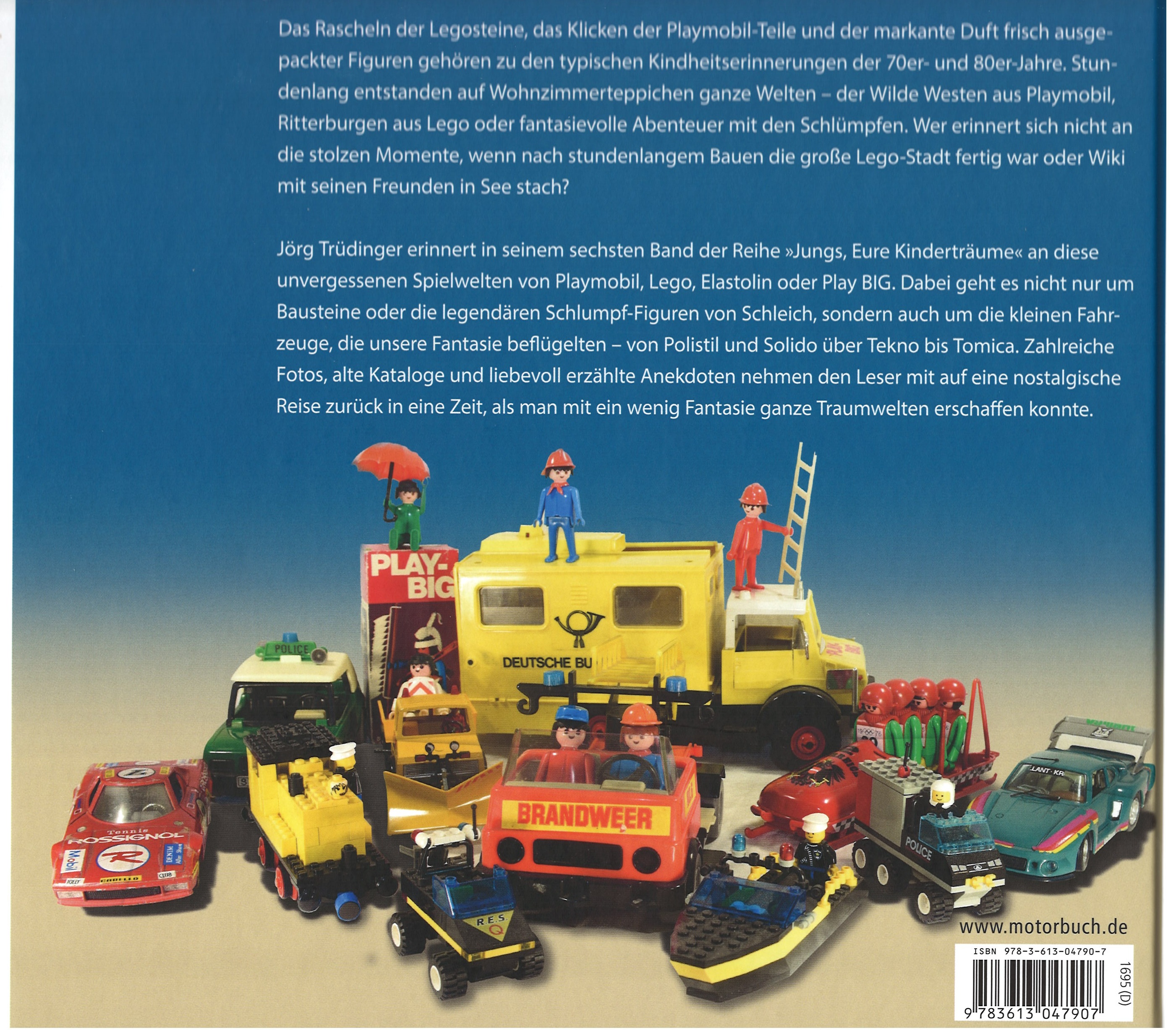 JUNGS, EURE KINDERTRÄUME - DIE SPIELWELTEN DER 70ER UND 80ER, Inhalt: Vorwort / PLAYMOBIL / LEGO / ELASTOLIN / SCHLÜMPFE / PLAY BIG / BRITAINS / SPIELZEUGAUTOS AUS ALLER WELT / EFSI TOYS / PLAYART / SOLIDO / TEKNO / SABLON / AUTO PILEN / POLISTIL, Jörg Trüdinger, Motorbuch Verlag, 1. Auflage 2026, 96 Seiten, 130 Bilder, Format 240 x 220 mm, ISBN 978-3-613-04790-7 (EAN 9783613047907)