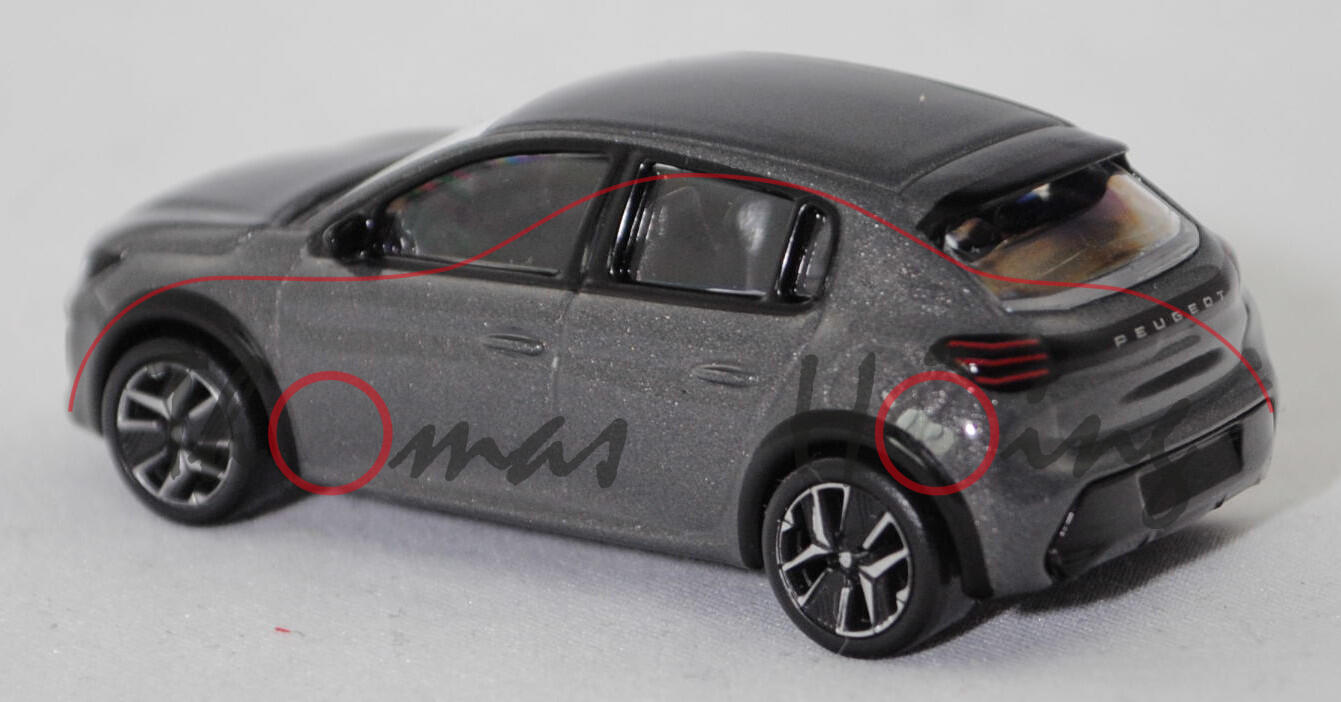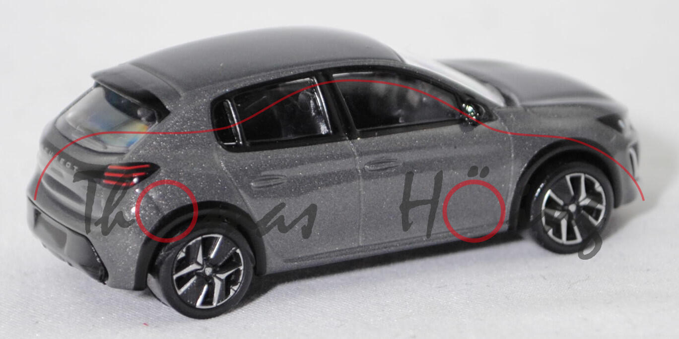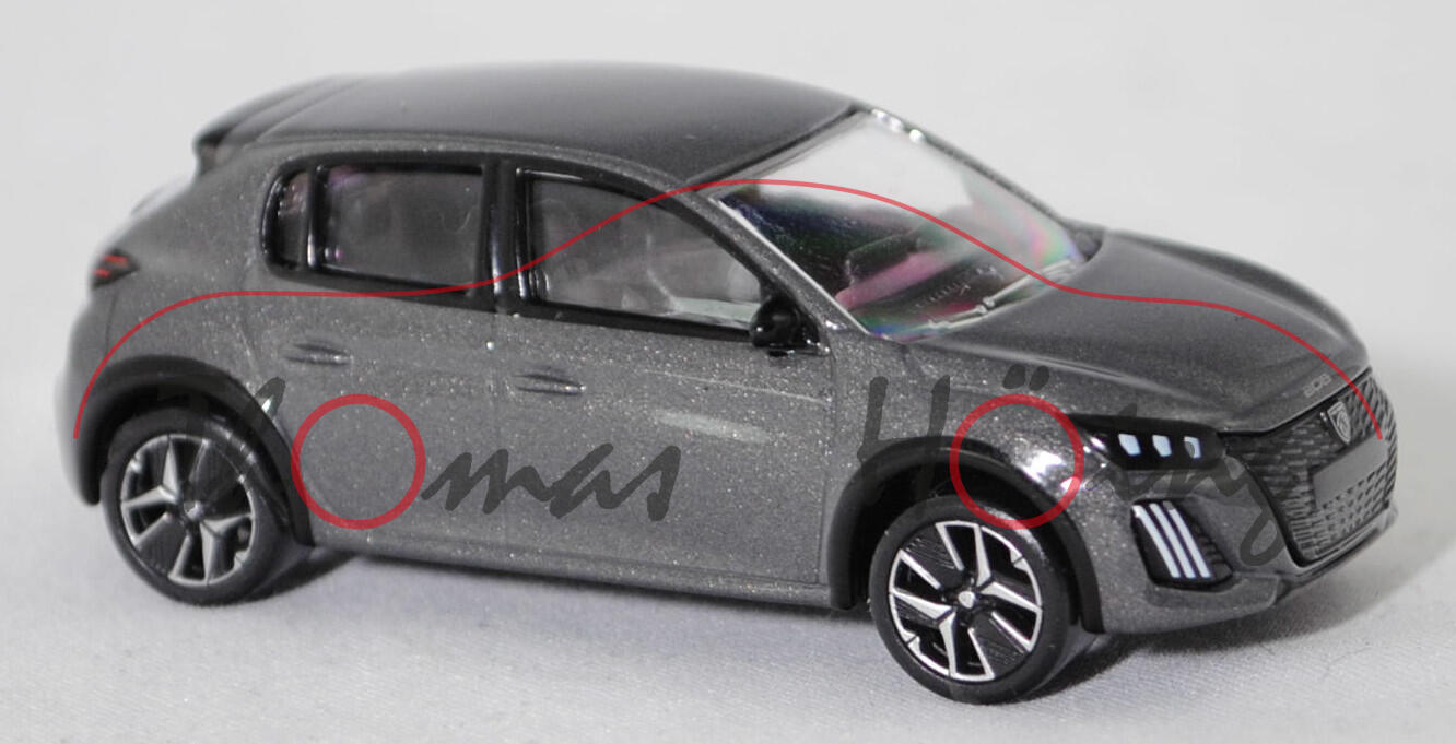 Peugeot e-208 II 136 / 156 GT (2. Generation, U / P21, Phase II / Facelift 2023 zum Modelljahr 2024, Modell 2023-), metallic selenium grau (Farbcode ELD), Norev, 1:64, mb