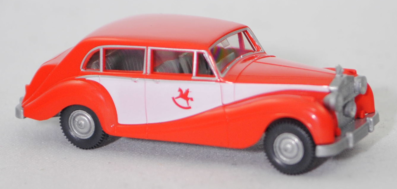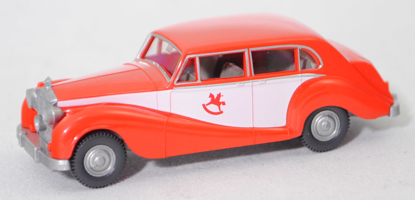 Rolls-Royce Silver Wraith (Facelift 1951, Modell 1951-1955), orange mit weißen Seitenflanken, Wiking, 1:87, Werbeschachtel (spielwarenmesse / 75th / Nürnberg 27 - 31 Jan 2026)