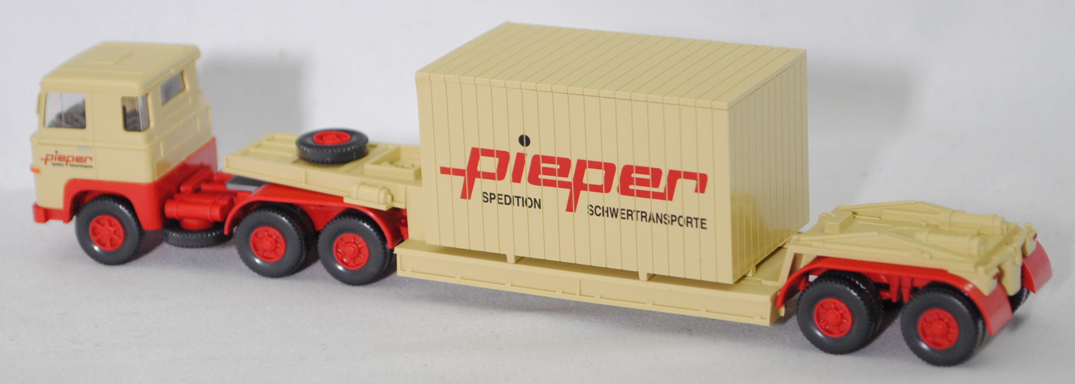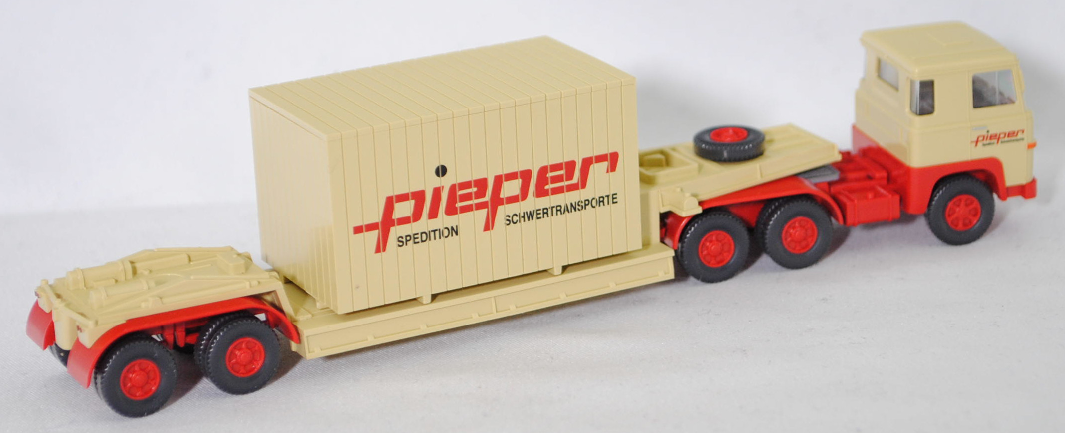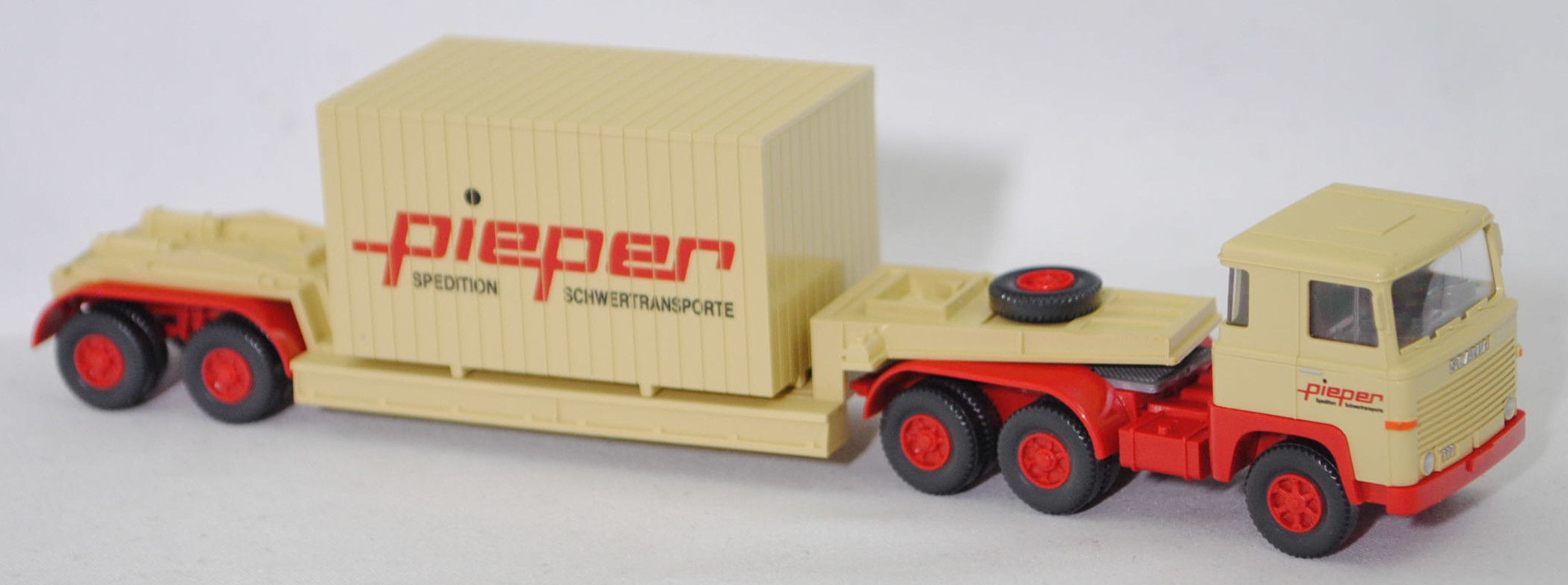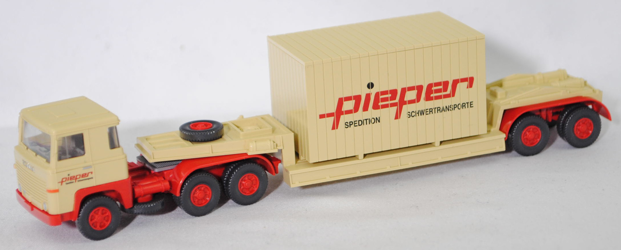 Scania LBT 111 6x4 (Modell 1974-1980) Tiefladesattelzug, grünbeige, pieper / Spedition Schwertransporte, Wiking, 1:87, mb (Limited Edition INTERMODELLBAU 2026)