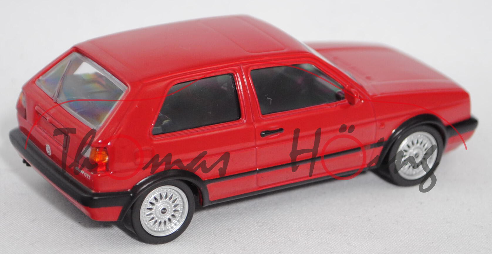 VW Golf GTI G60 (2. Generation, 1G1, Facelift 2 1989, Modell 1990-1991), tornadorot (Verkaufskennzeichen G2, Lacknummer LY3D), Norev Jet-car / Youngtimers, 1:43, mb (weiße Box)