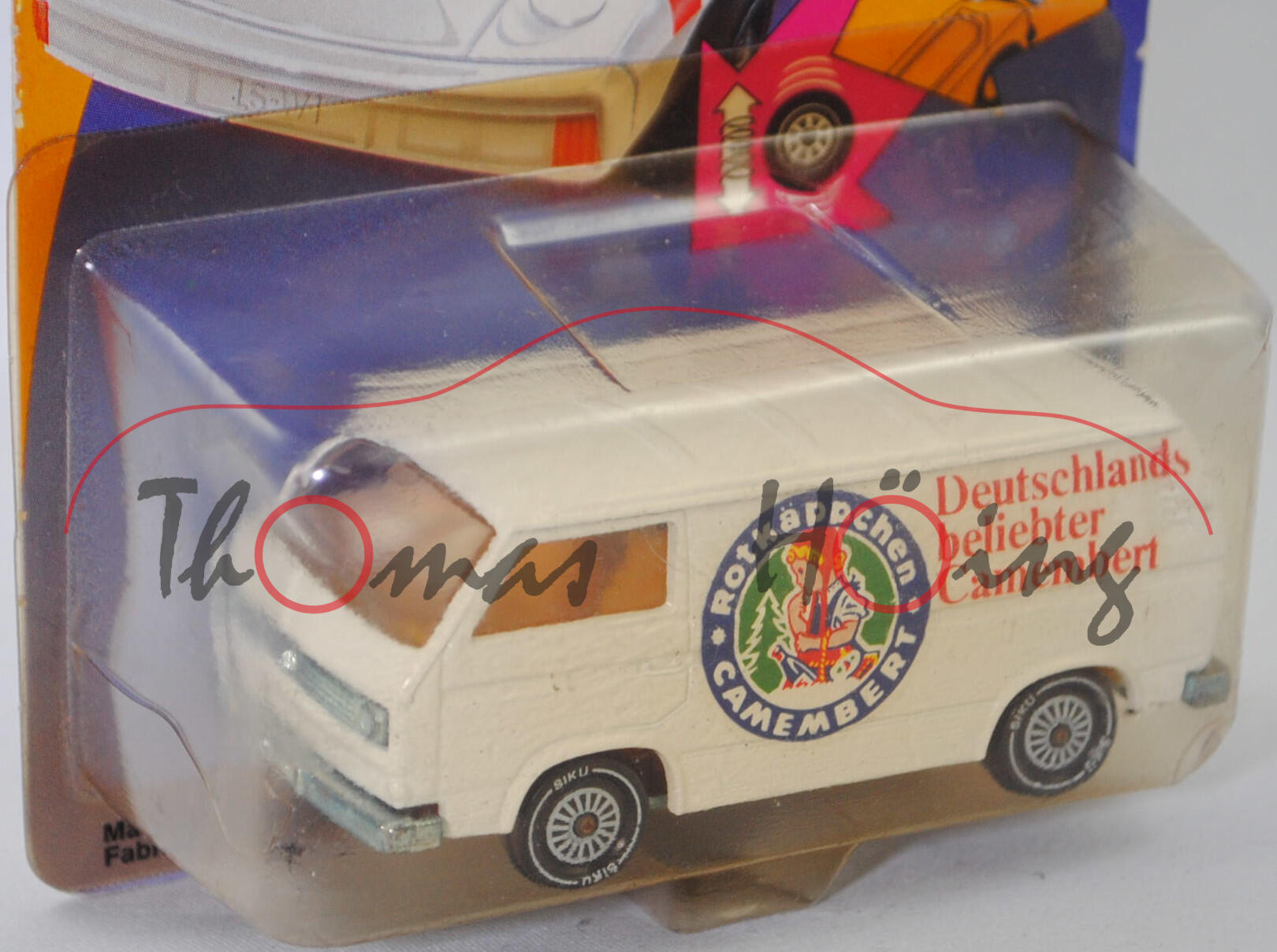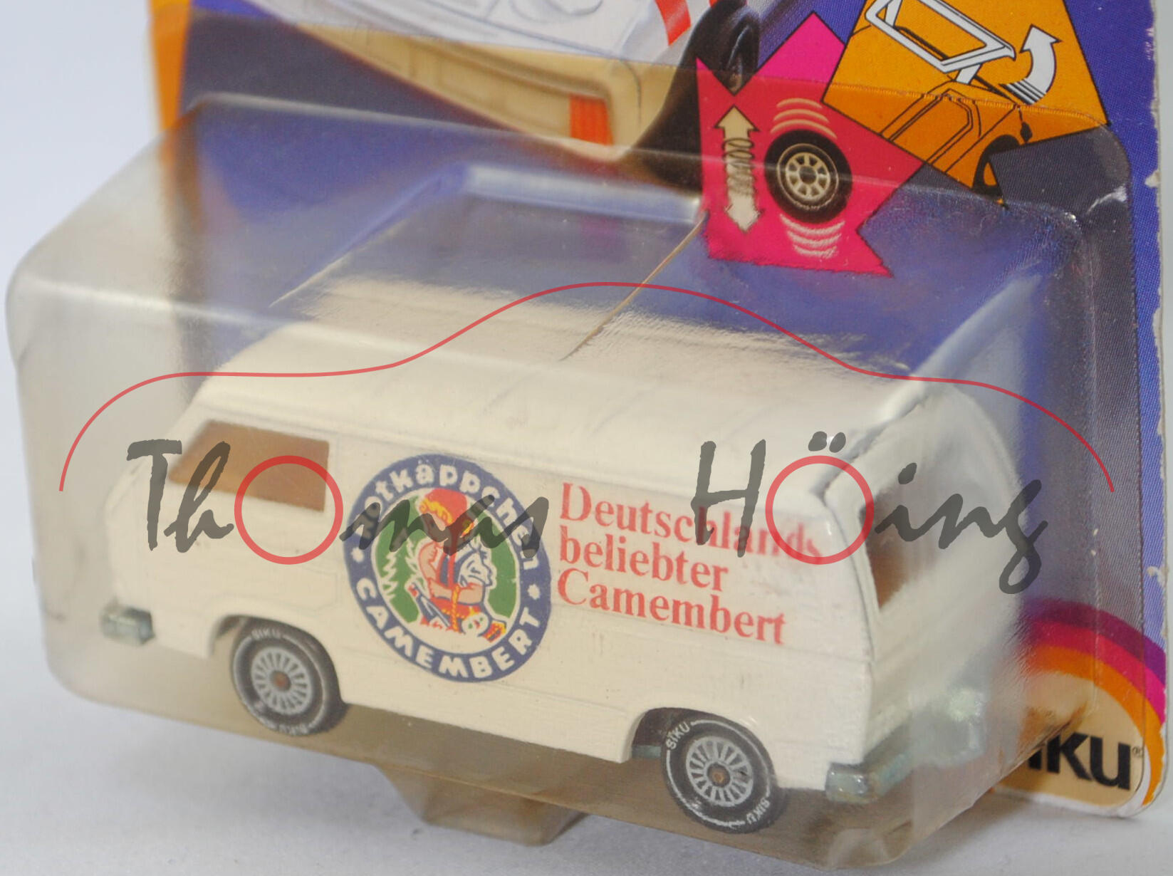 VW Transporter Kastenwagen (T3, Modell '80, Modell 1979-1982), cremeweiß, Rotkäppchen / CAMEMBERT / Deutschlands / beliebter Camembert, R11, SIKU, 1:60, P21 vergilbt (Limited Edition)