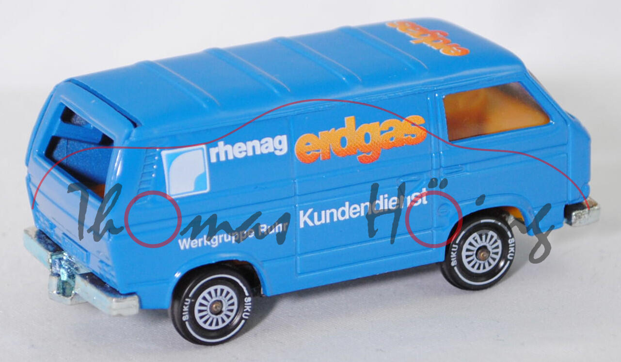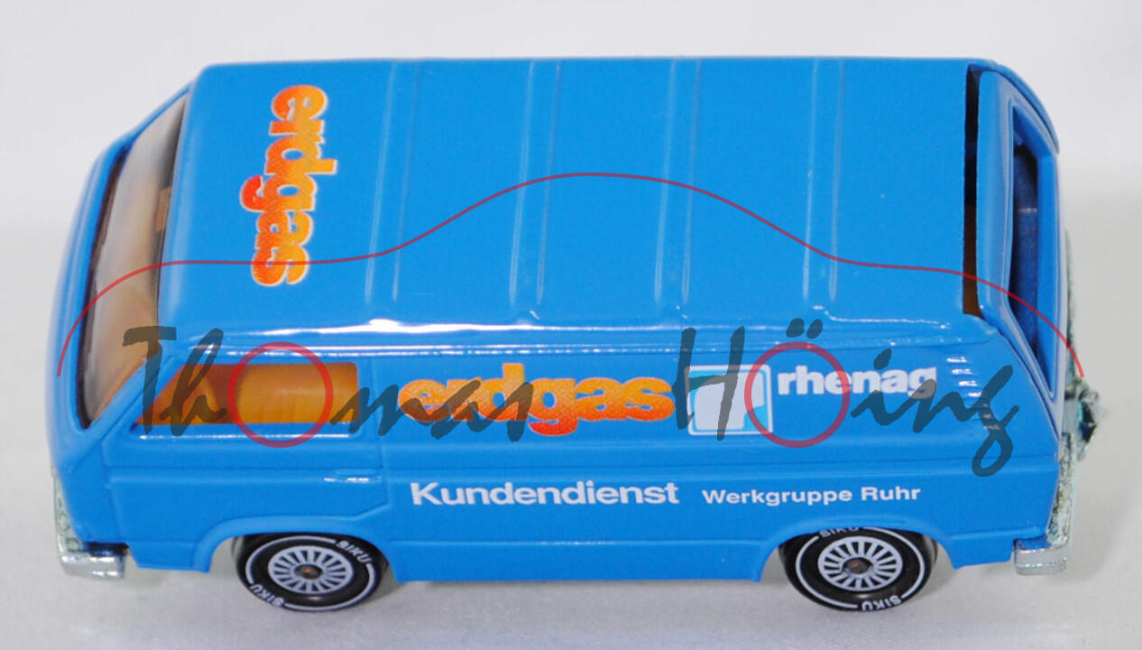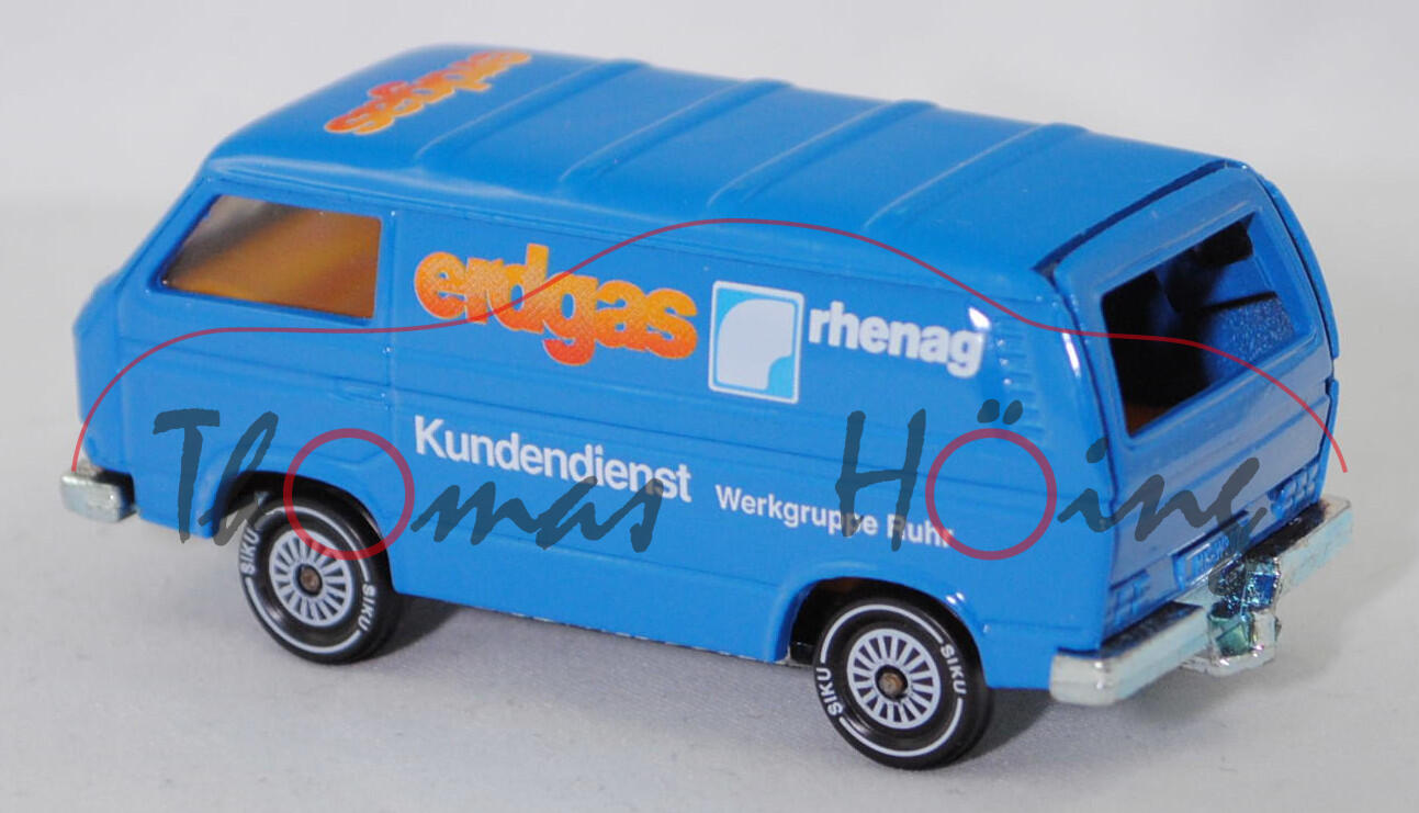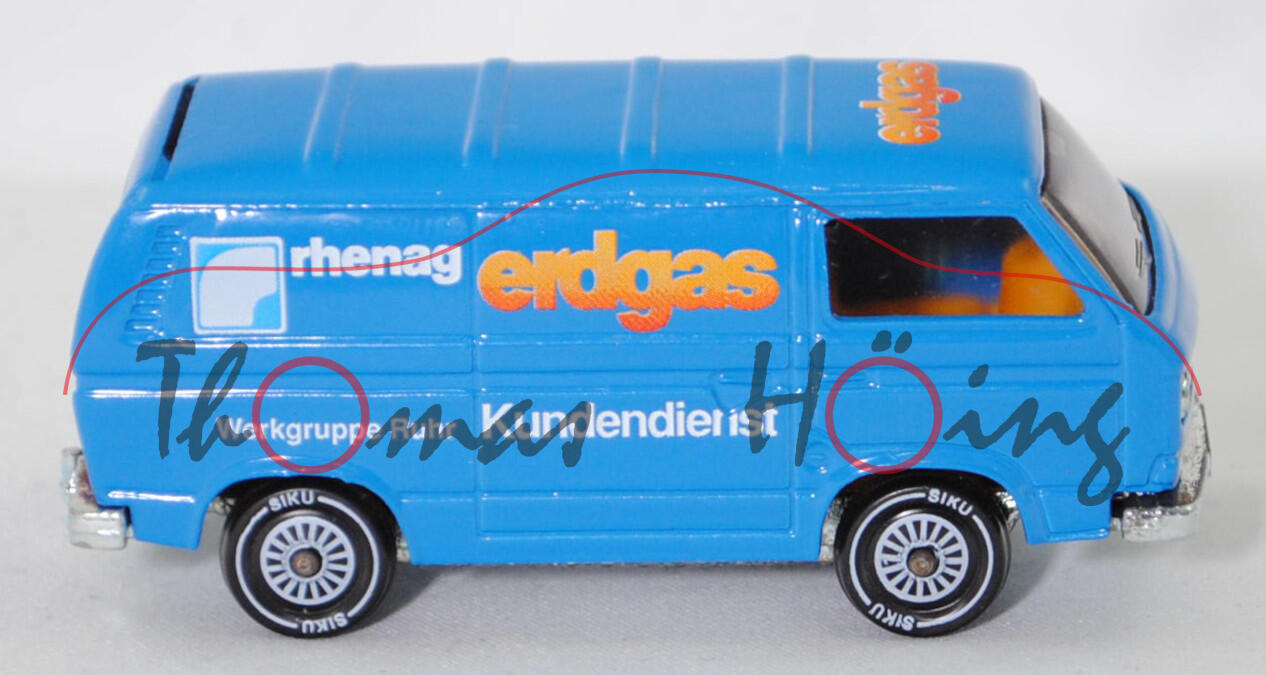 VW Transporter Kastenwagen (T3, Modell '80, Modell 1979-1982), himmelblau, erdgas rhenag / Kundendienst Werkgruppe Ruhr, R11, SIKU, 1:60, m (Limited Edition)