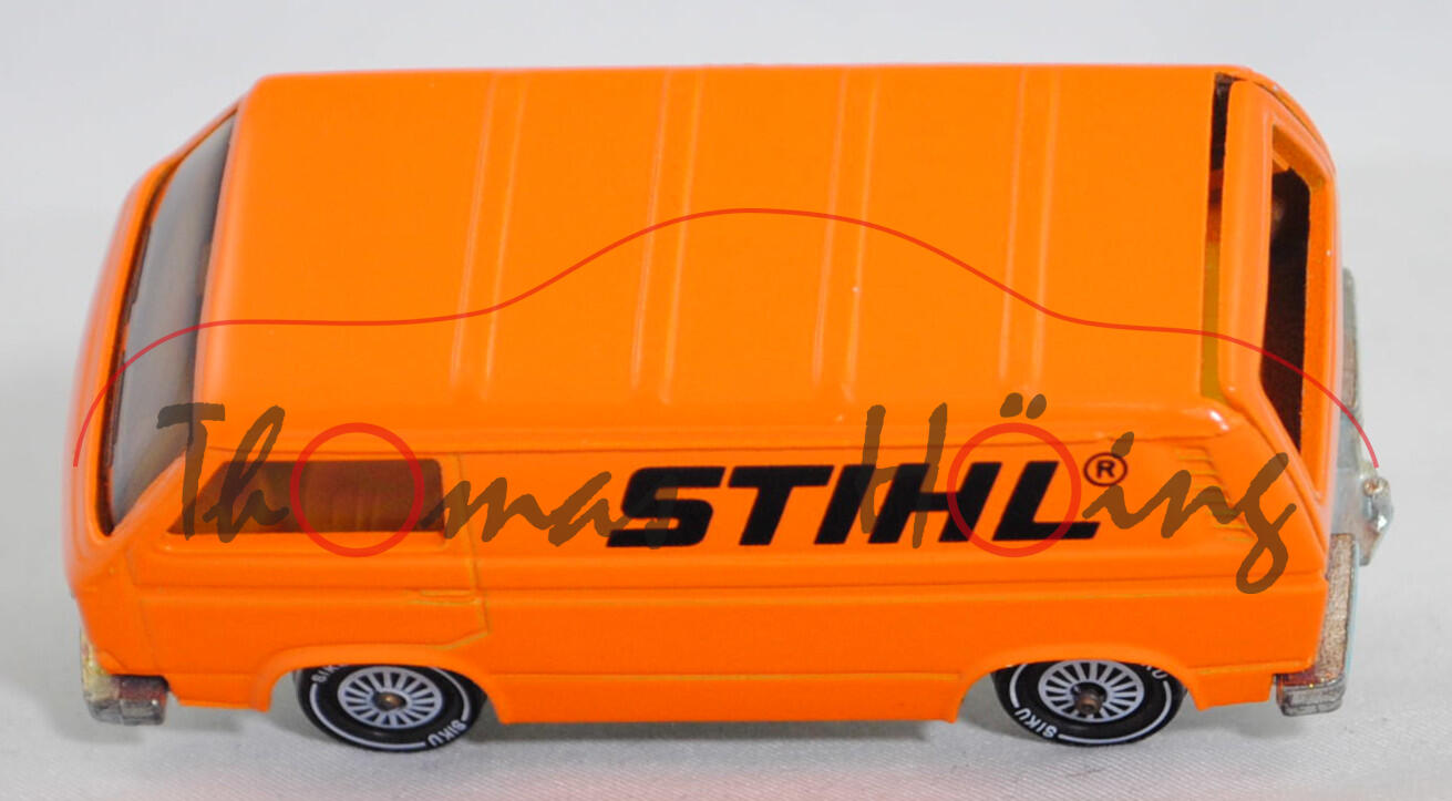 Produktinformationen "VW Transporter Kastenwagen (Typ 2 Transporter 3 (T3, Modell '80), Modell 1979-1982), pastellorange, STIHL, R11 glatt, SIKU SUPER, 1:60, Werbeschachtel (Limited Edition)"