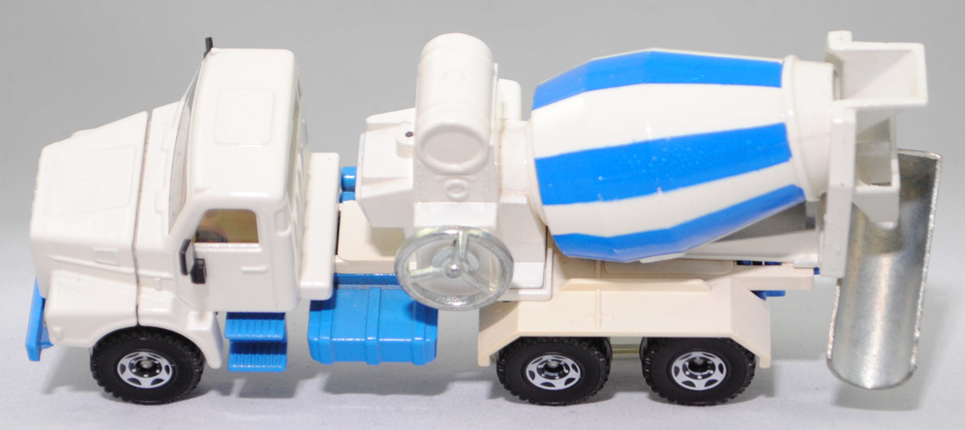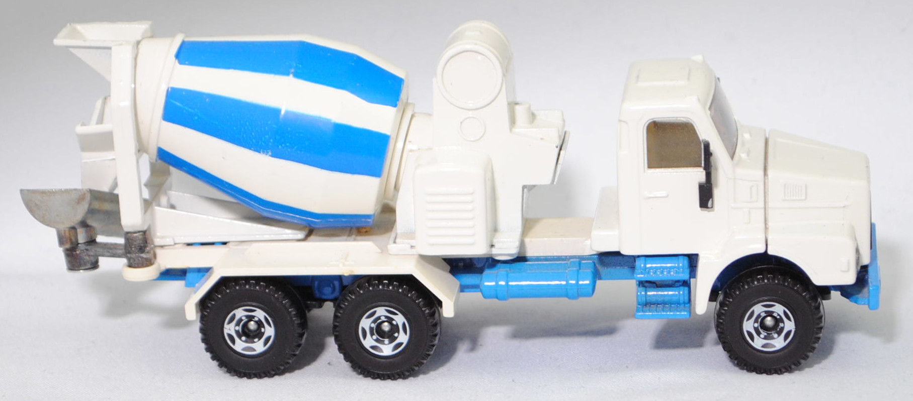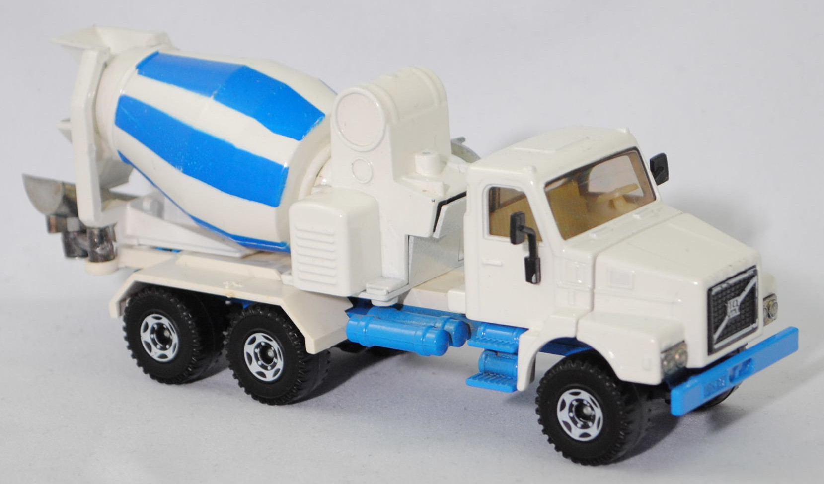 Volvo N10-38 Turbo 6 (Modell 1979-1983) Betonmischer, weiß, Druck 10 / Turbo 6 und Rahmen in weiß, Luftansaugstutzen weg, Streifen in blau auf der Mischtrommel, SIKU SUPER, m (Limited)
