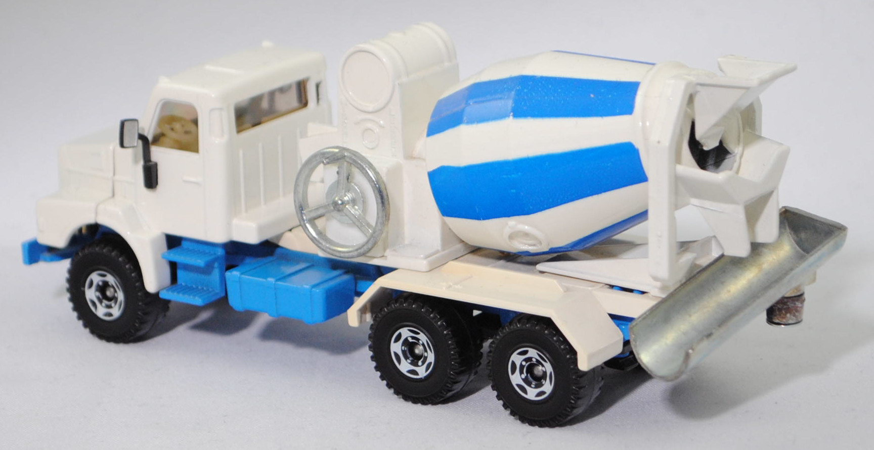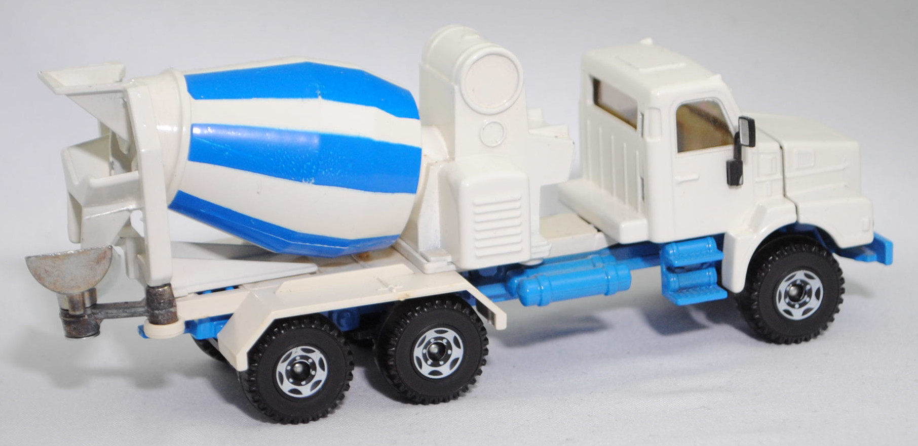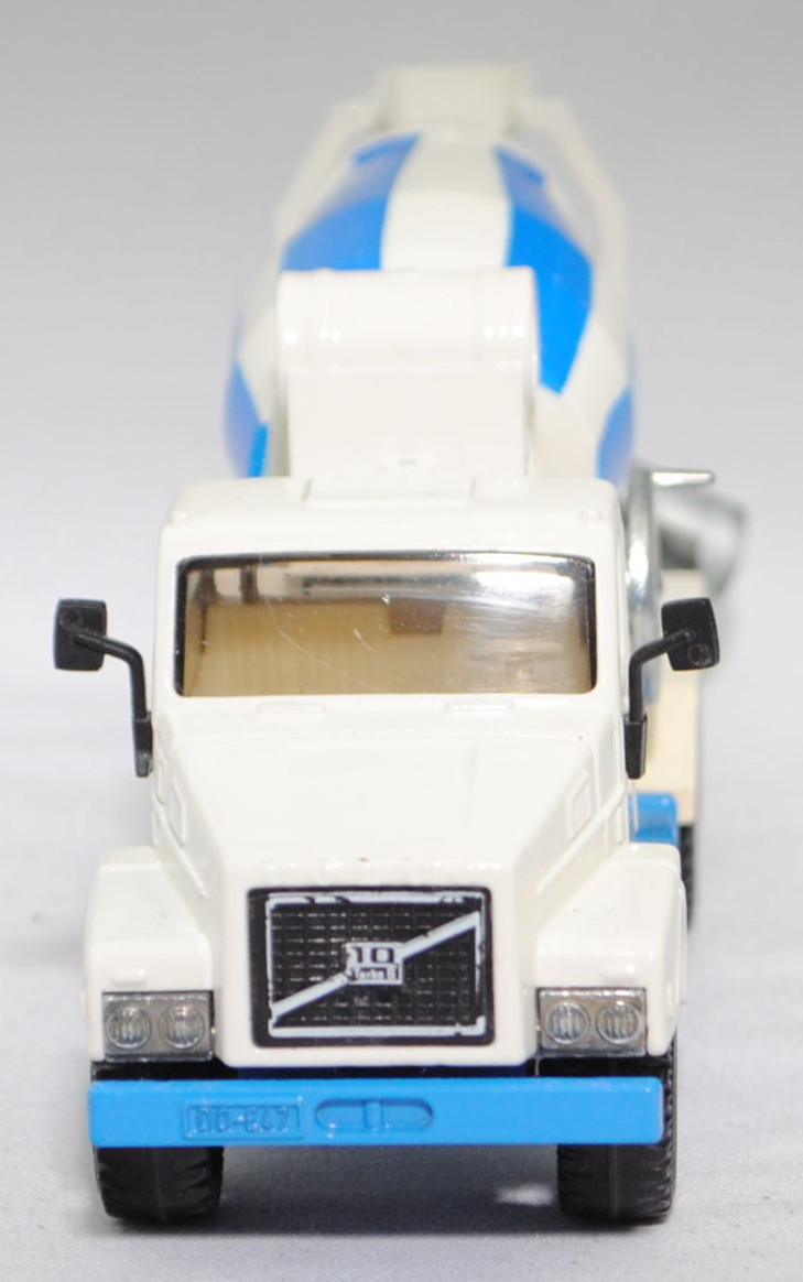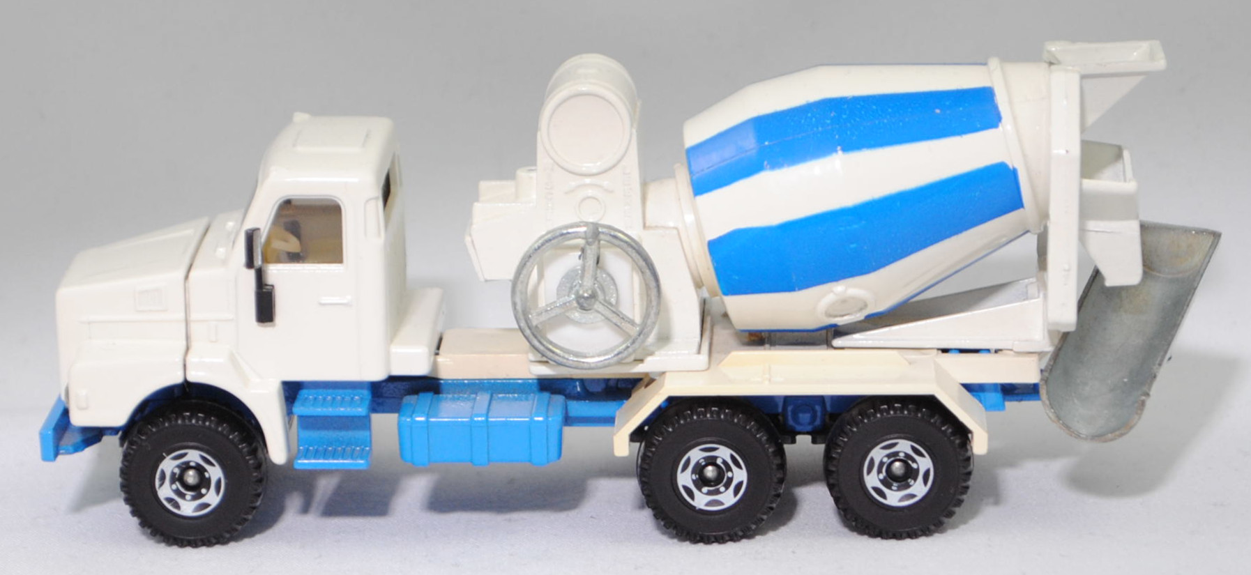 Volvo N10-38 Turbo 6 (Modell 1979-1983) Betonmischer, weiß, Druck 10 / Turbo 6 und Rahmen in weiß, Luftansaugstutzen weg, Streifen in blau auf der Mischtrommel, SIKU SUPER, m (Limited)