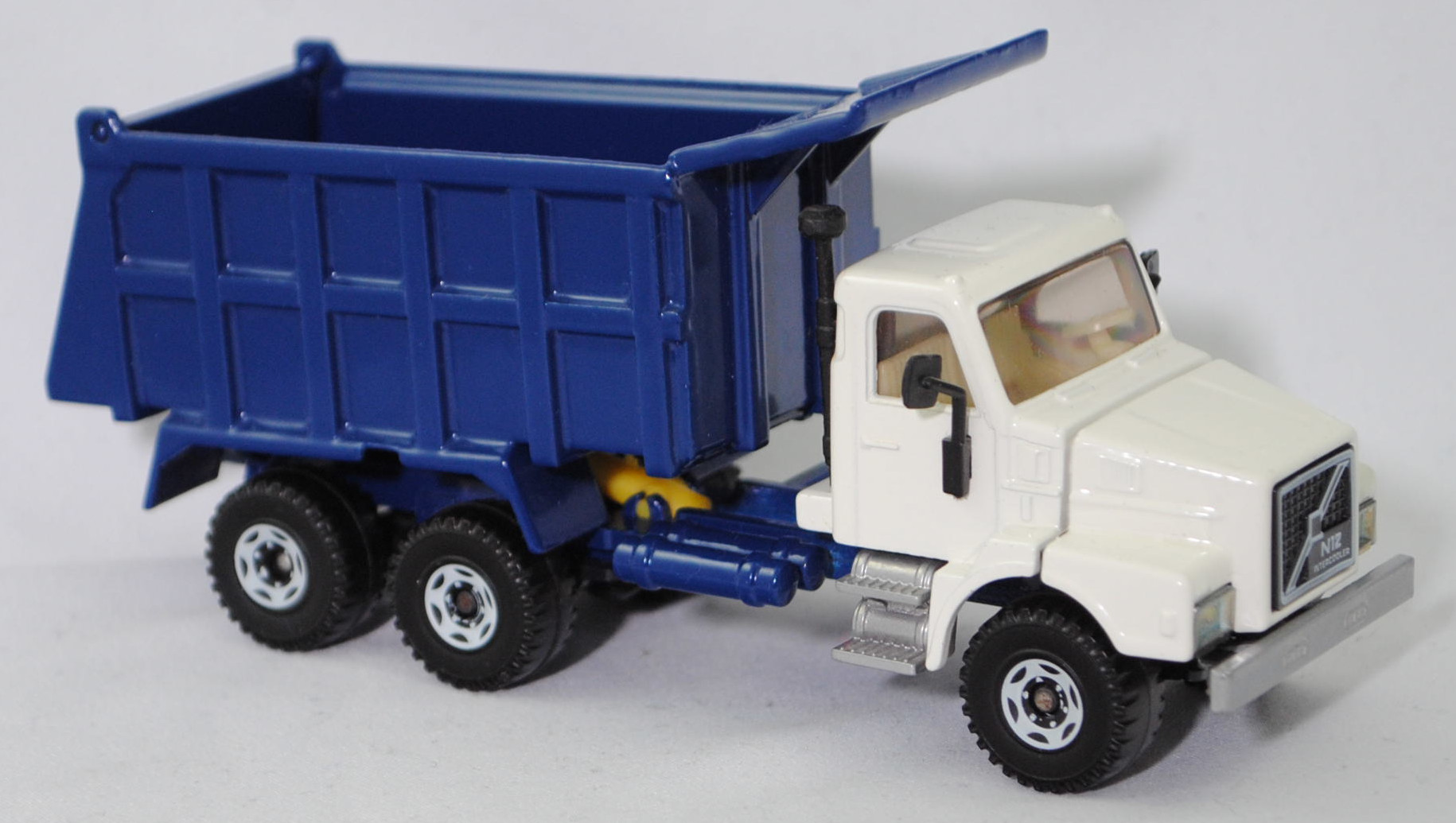 Produktinformationen "Volvo N12-38 INTERCOOLER 6x4 (2. Generation, Modell 1985-1989) Muldenkipper, cremeweiß/saphirblau, VOLVO / N12 / INTERCOOLER, SIKU SUPER, m (Limited Edition)"