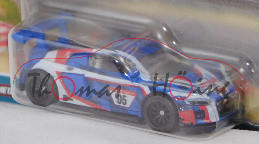 Audi R8 LMS GT3 (Modell 2015-2019), blau/reinweiß/rot, Startnummer 05, Hot Wheels, 1:66, Blister