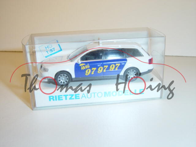Audi A6 Avant, reinweiß/blau, Taxi 979797, Rietze, 1:87, mb