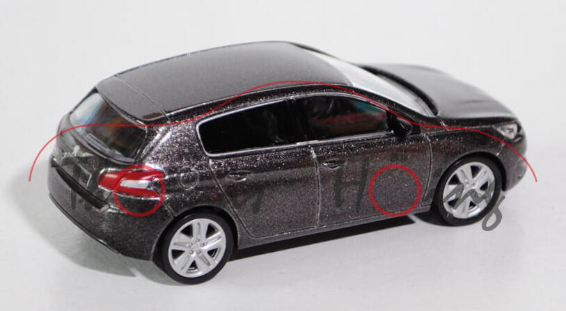 Peugeot 308 (2. Generation, fünftürige Schräghecklimousine), Modell 2013-, umbragraumetallic, ca. 1: