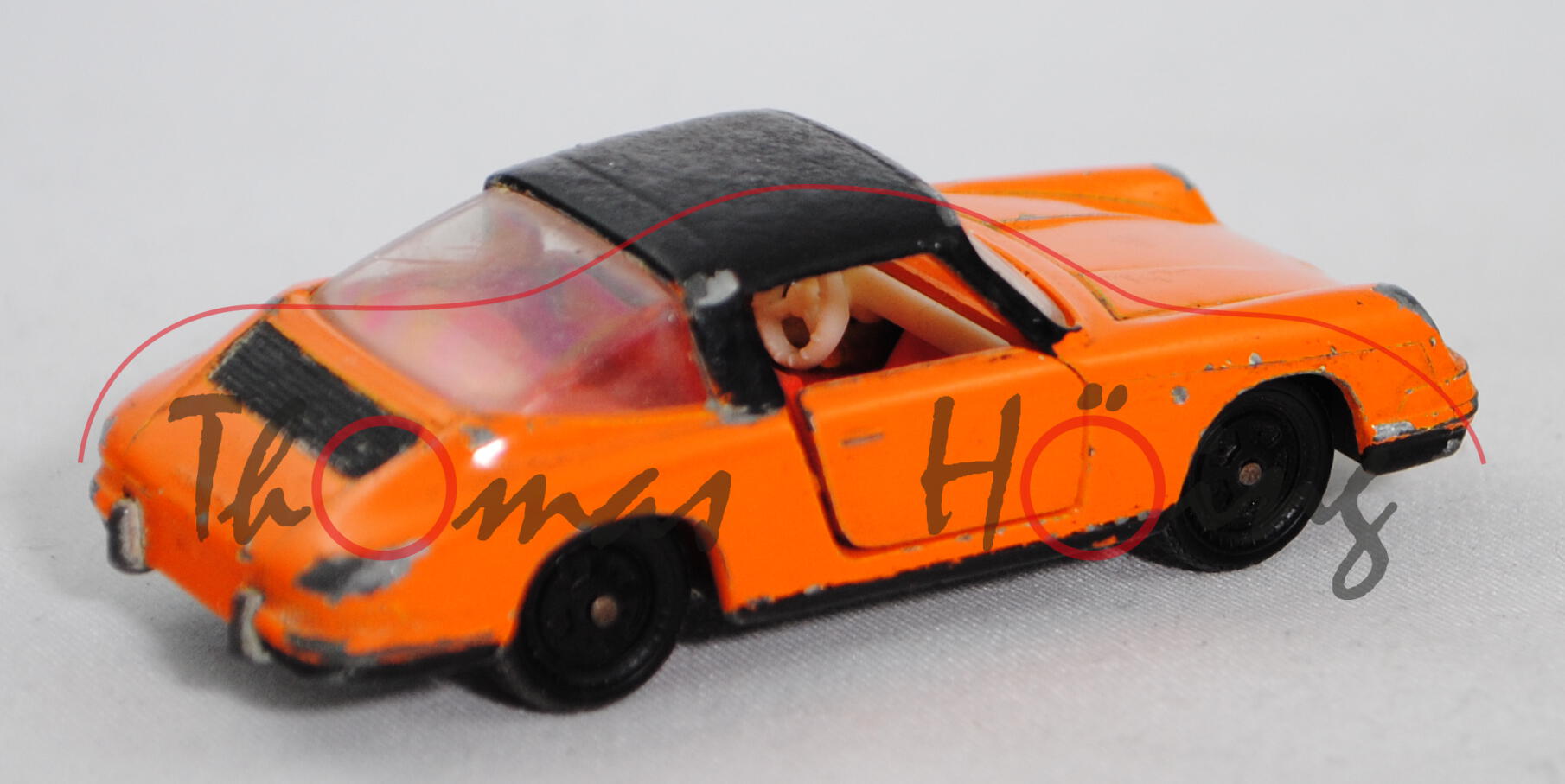 00011 Porsche 911 Targa (Typ Urmodell, Modell 1968-1969), hell-tieforange, innen rotorange, Lenkrad cremeweiß, Dach schwarz lackiert, Zinkguß-Serie, ca. 1:60, sc