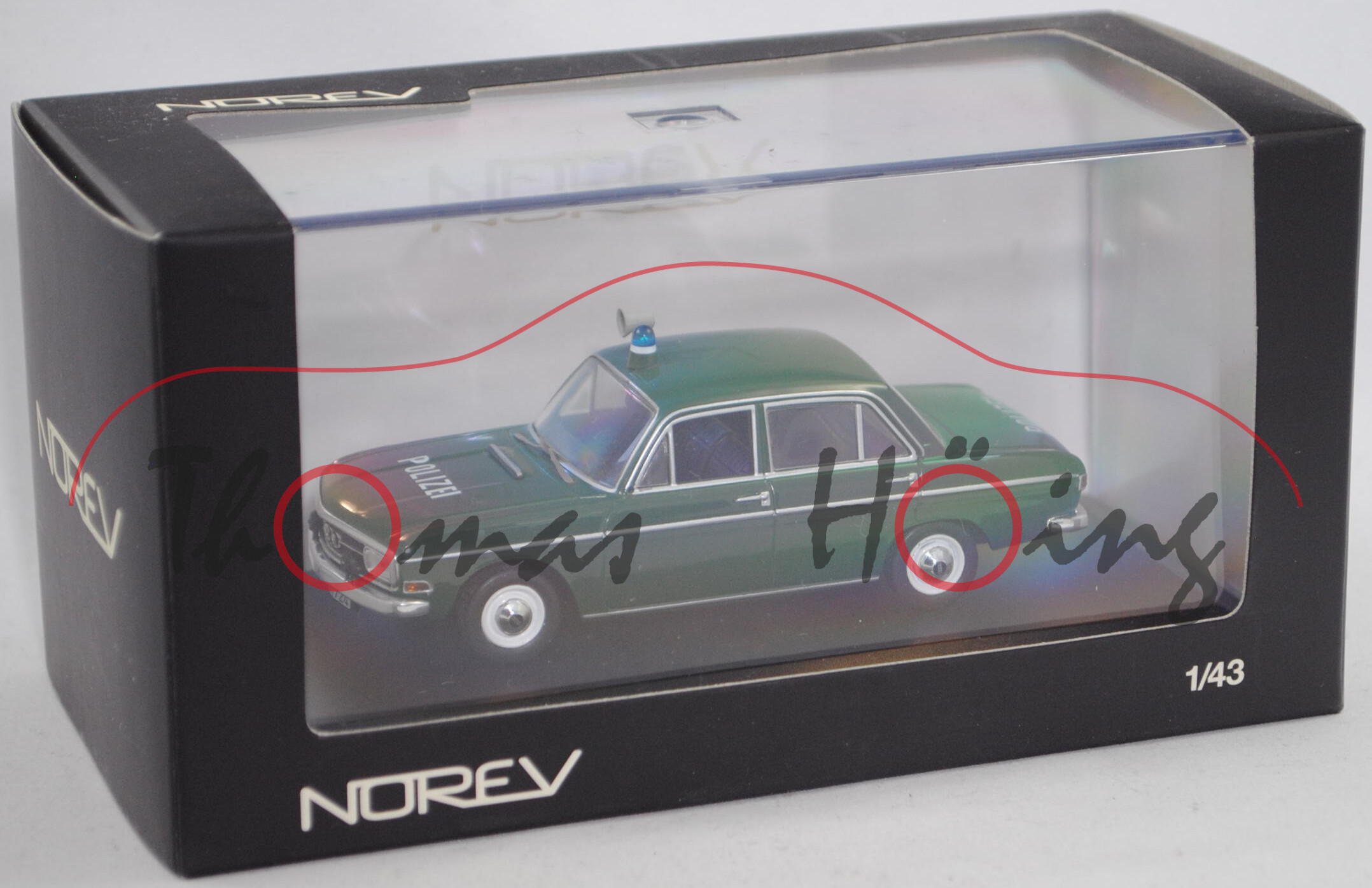 Audi 72 (Typ F103, Mod. 1965-1968, Bj. 1965) Polizei, hell-tannengrün, POLIZEI, Norev, 1:43, PC-Box
