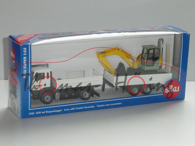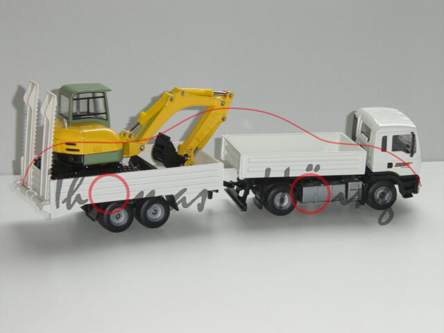 Produktinformationen "MAN TGA LKW mit Raupenbagger, weiß/grau und gelb/grün/schwarz, ESTELIT, L17"
