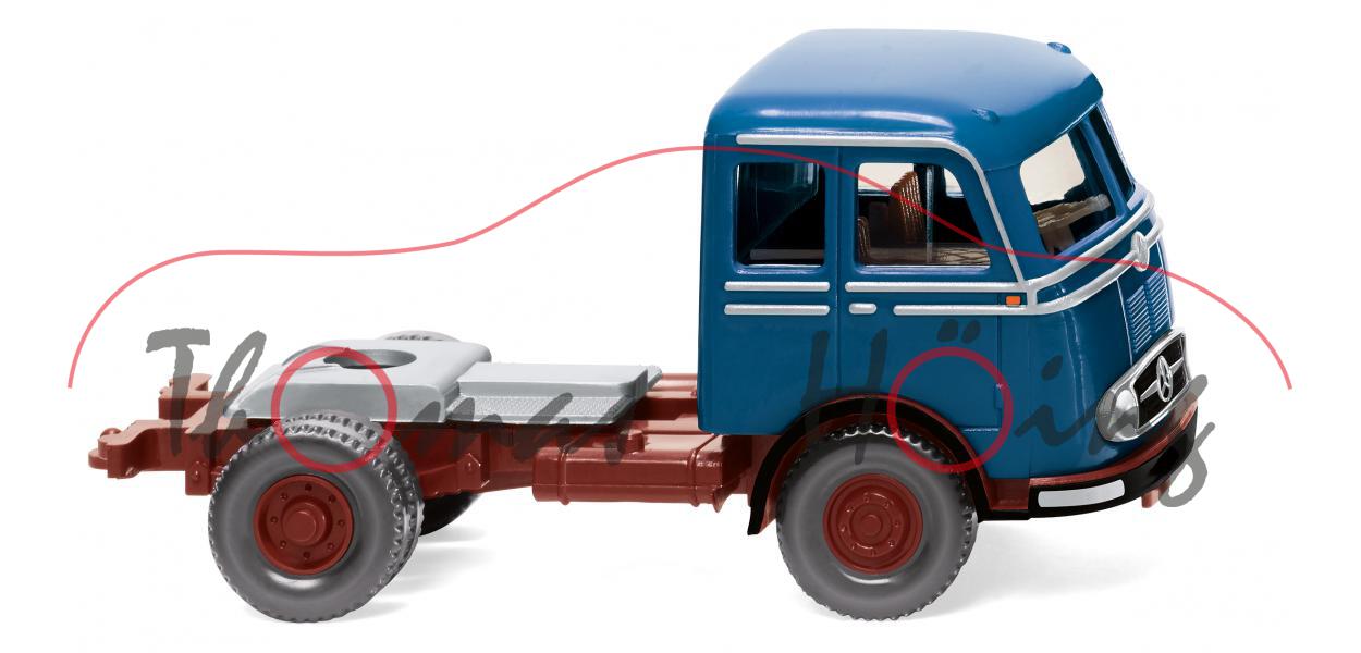 Set Mercedes Pullman - Pullman-Komfort für das Transportgewerbe, Meilensteine der Wiking-Geschichte, Set mit Mercedes-Benz LPS (Lastwagen-Pullman-Sattelzugmaschine) Solo-Zugmaschine 4x2 (Typ Frontlenker, kleines Fahrerhaus, Motor: Mercedes-Benz Sechszylinder-Reihen-Viertakt-Diesel, Modell 1955-1963), azurblau, innen olivbraun, Stoßstange vorne und Kotflügel vorne schwarz, Fahrgestell mit AHK oxidrot, Felgen oxidrot; Mercedes-Benz LPS (Lastwagen-Pullman-Sattelzugmaschine) Flachpritschensattelzugmaschine 6x2 (Typ Frontlenker, großes Fahrerhaus, Motor: Mercedes-Benz Sechszylinder-Reihen-Viertakt-Diesel, Modell 1955-1963), azurblau, innen olivbraun, Lenkrad hellelfenbein, Stoßstange vorne und Kotflügel vorne schwarz, Doppelkotflügel hinten schwarz, Fahrgestell mit AHK oxidrot, Felgen oxidrot; Mercedes-Benz LPS (Lastwagen-Pullman-Sattelzugmaschine) Fernverkehrszugmaschine 4x2 (Typ Frontlenker, großes Fahrerhaus, Motor: Mercedes-Benz Sechszylinder-Reihen-Viertakt-Diesel, Modell 1955-1963), azurblau, innen olivbraun, Lenkrad hellelfenbein, Stoßstange vorne und Kotflügel vorne schwarz, Fahrgestell mit AHK oxidrot, Felgen oxidrot; 2-Achs-Sattelauflieger, Plattform azurblau, Plattformunterteil oxidrot, Stützrollen oxidrot, Doppelkotflügel schwarz, Felgen oxidrot, Wiking, 1:87, mb (EAN 4006190990974)