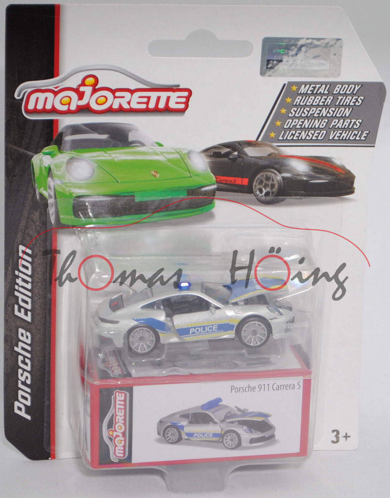 Produktinformationen "Porsche 911 Carrera S Coupé (Typ 992, Modell 2018-) Polizei, silber, POLICE, majorette, ca. 1:60, mb"