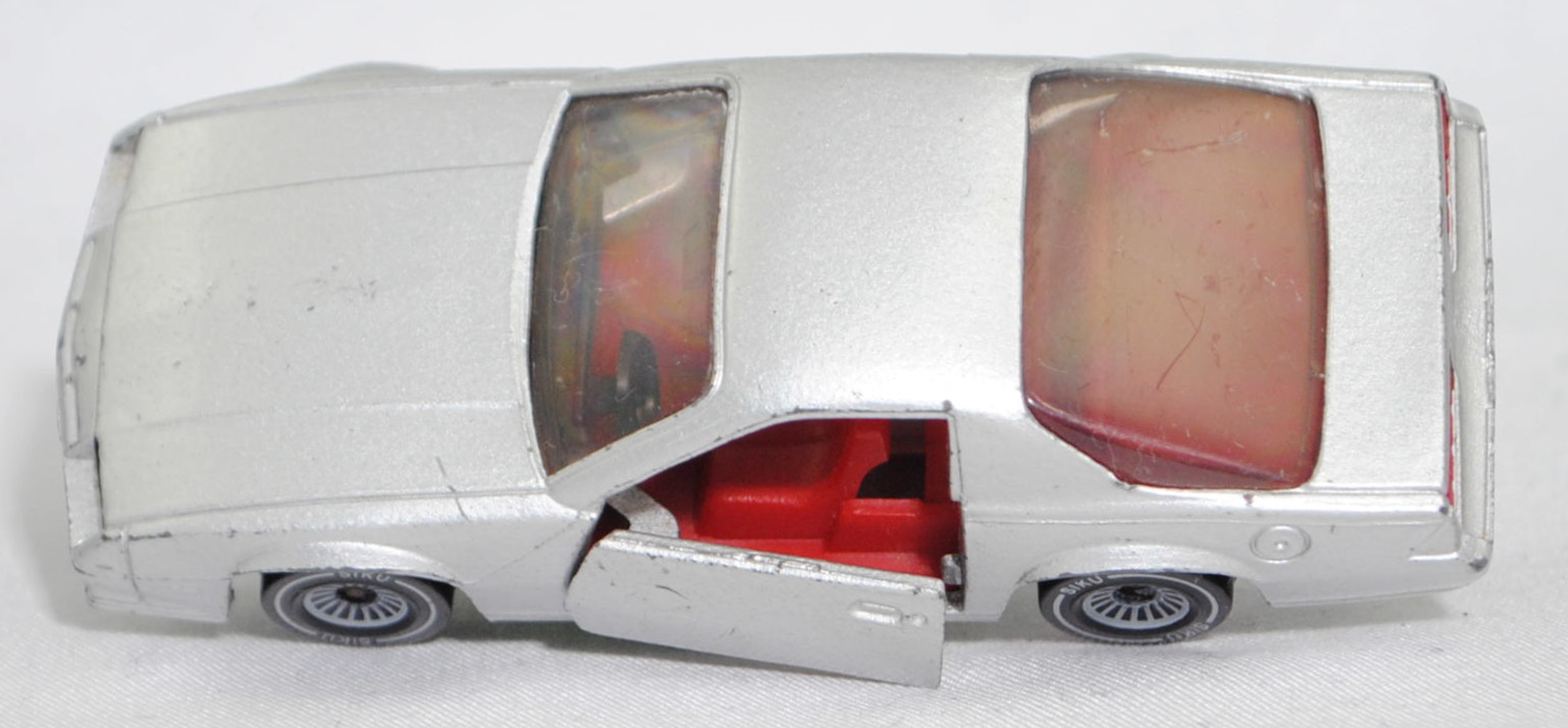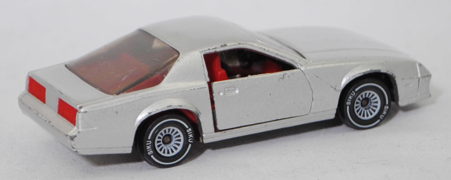 00000 Chevrolet Camaro Berlinetta 5.0L V8 (3. Generation, Vorfacelift, Modell 1982-1984), silber, Bpr. CAMARO Z 28, W-Germ, Chassis chrom, ohne CE-Zeichen, B4, SIKU SUPER, 1:59, m-