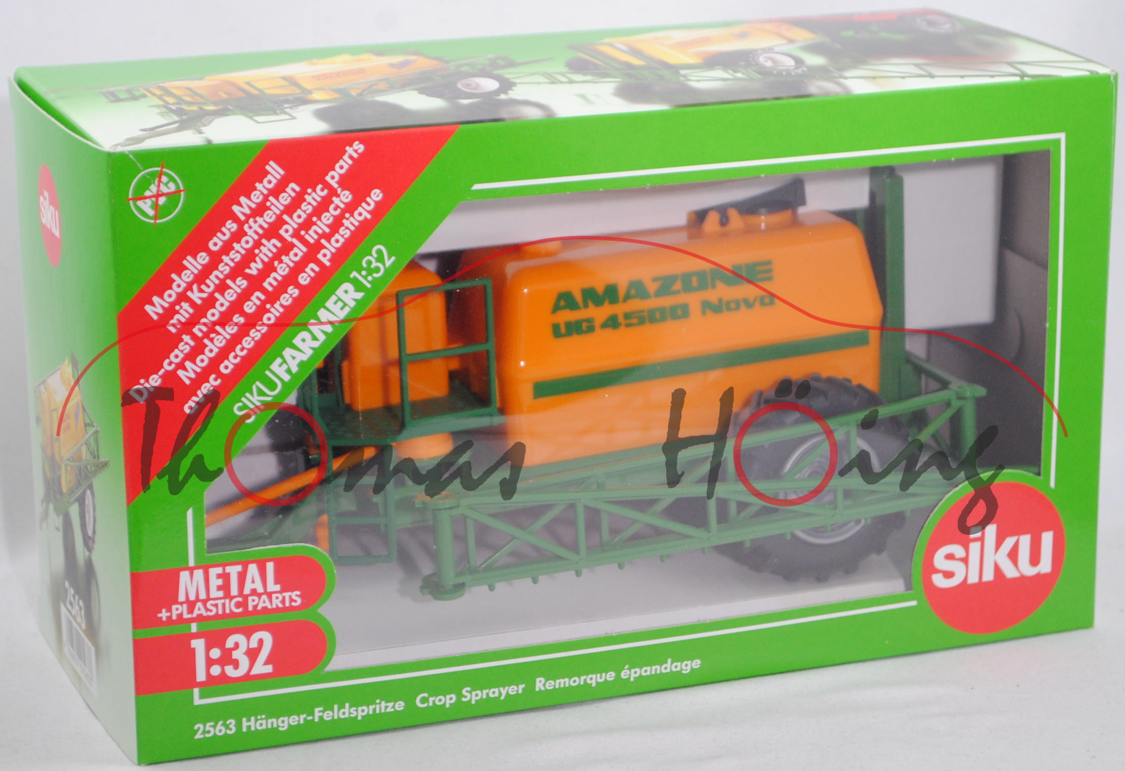 00000c Hänger-Feldspritze, Tank orange, AMAZONE UG 4500 Nova, SIKU FARMER 1:32, L15nmp
