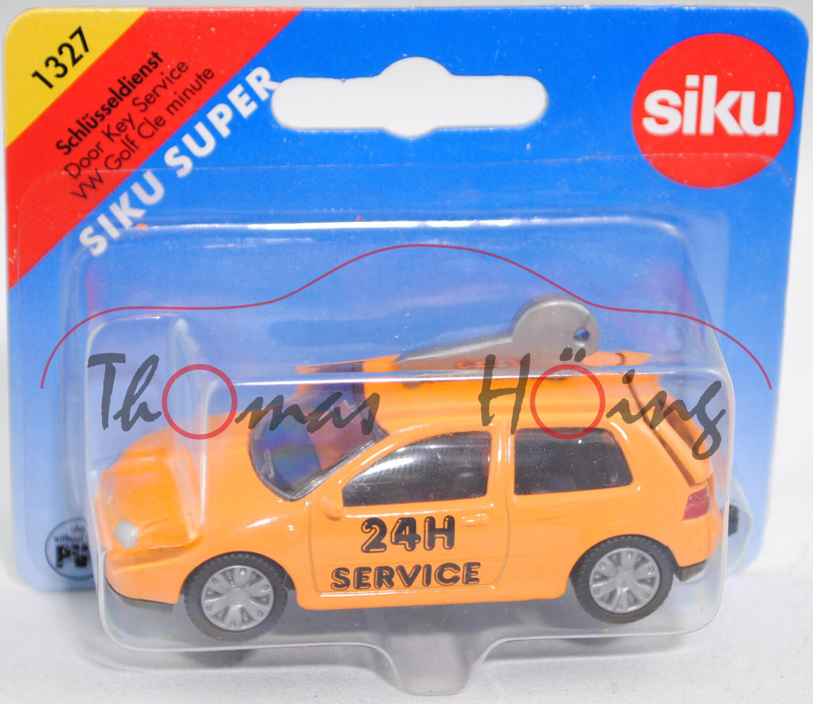 VW Golf IV 1.8 T (Typ 1J, Modell 1997-2003) Schlüsseldienst, hell-tieforange, innen schwarz, Lenkrad schwarz, 24H / SERVICE, B16 grau, ca 1:55, P28a