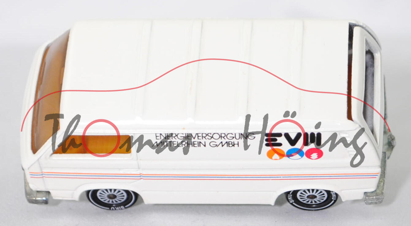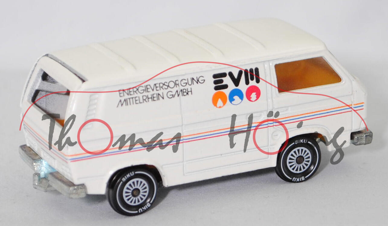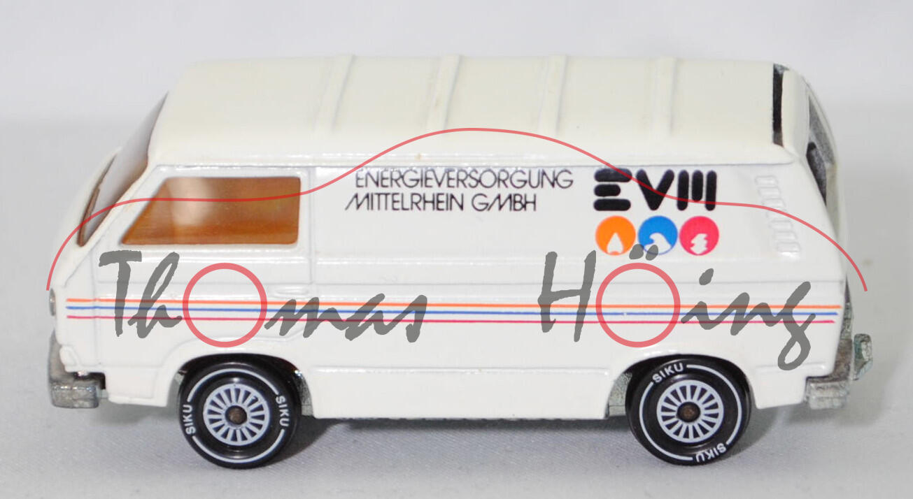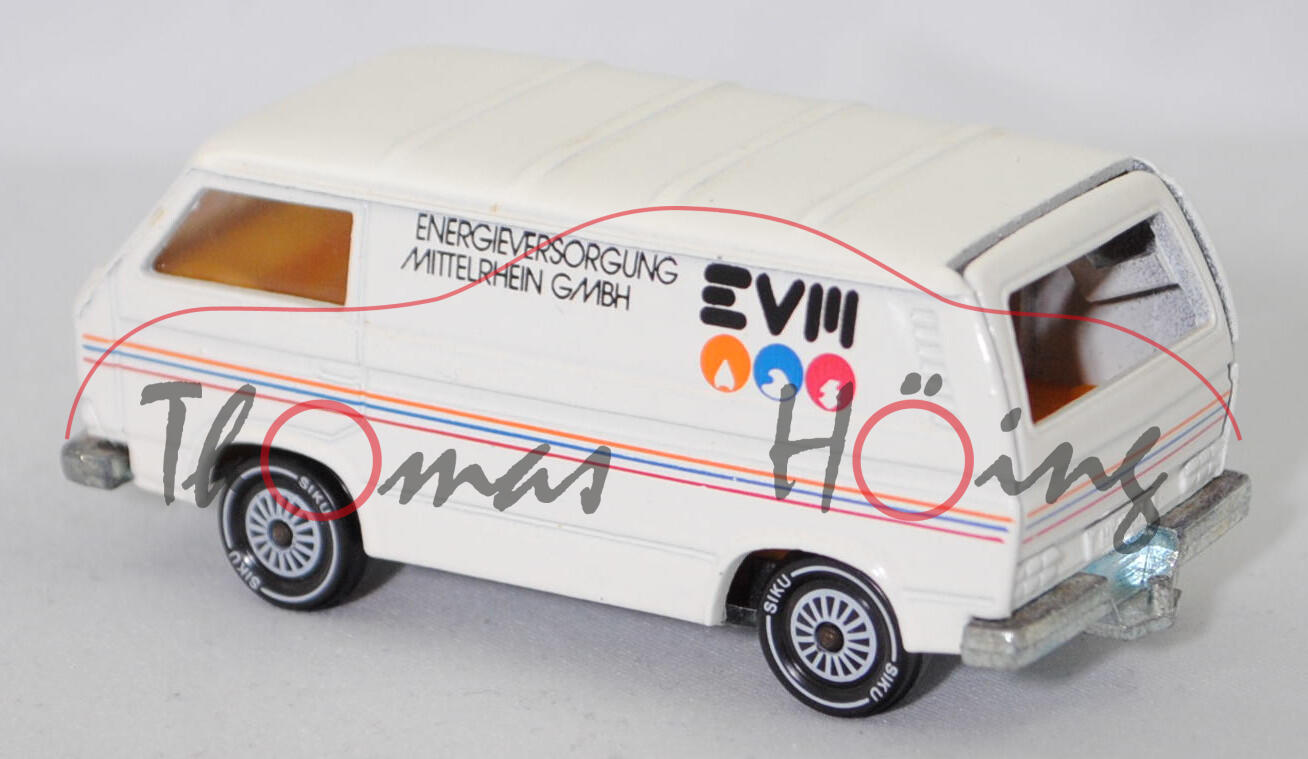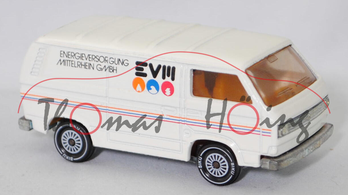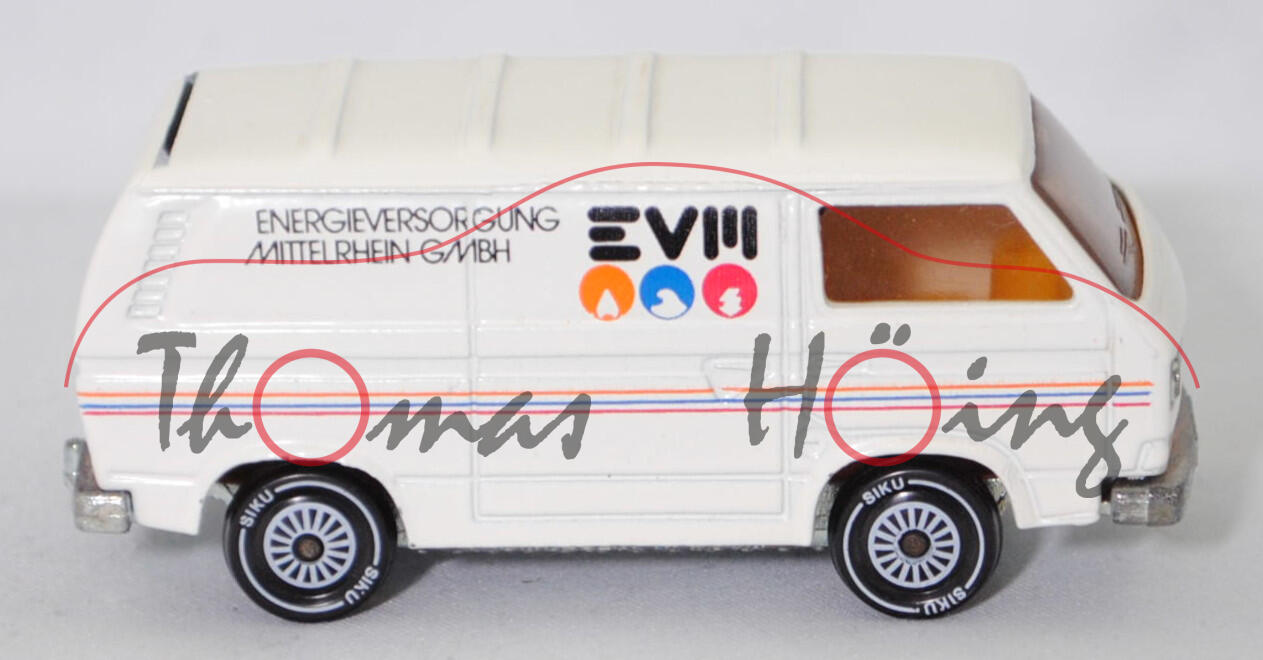 VW Transporter Kastenwagen (T3, Modell '80, Modell 1979-1982), reinweiß, ENERGIEVERSORGUNG / MITTELRHEIN GMBH / EVM, ohne CE-Zeichen, SIKU, 1:60, m (Limited Edition)