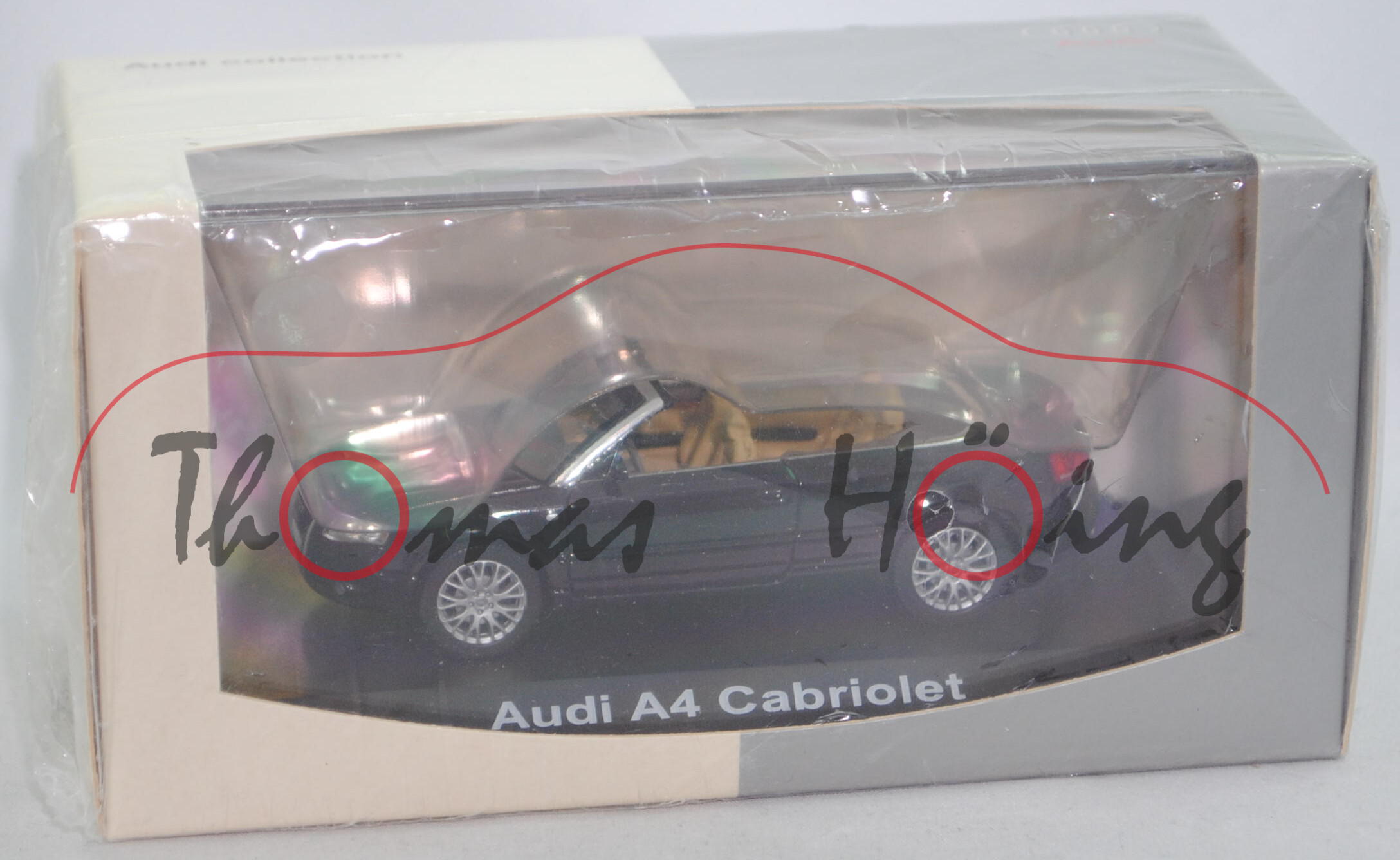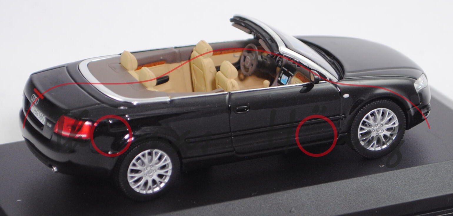 Audi A4 Cabriolet 3.2 FSI quattro (B7, Typ 8H, Modell 06-09), phantomschwarz, Norev, 1:43, Werbebox