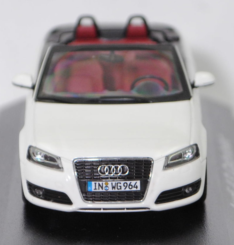 Audi A3 Cabriolet 2.0 TFSI Ambition (1. Generation Audi A3 Cabriolet bzw. 2. Generation Audi A3, Typ 8P, Modell 2008-2013), ibisweiß (LY9C), Minichamps, 1:43, Werbeschachtel