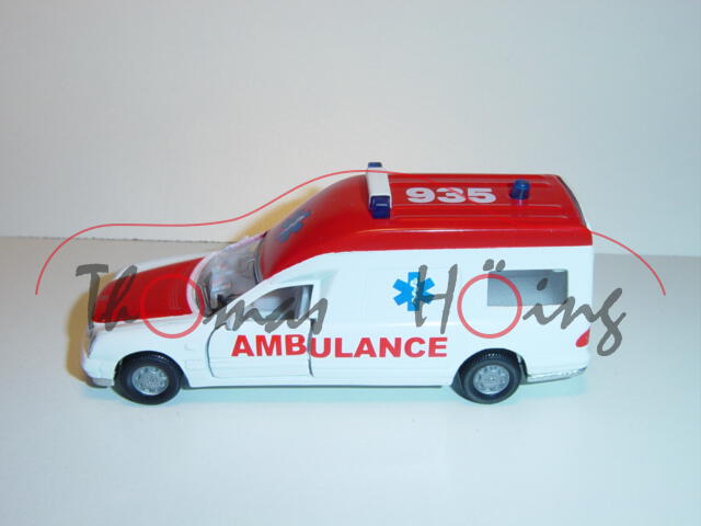 99900 EU Mercedes E 230 Binz-Ambulance, weiß/rot, HL lackiert, L15n