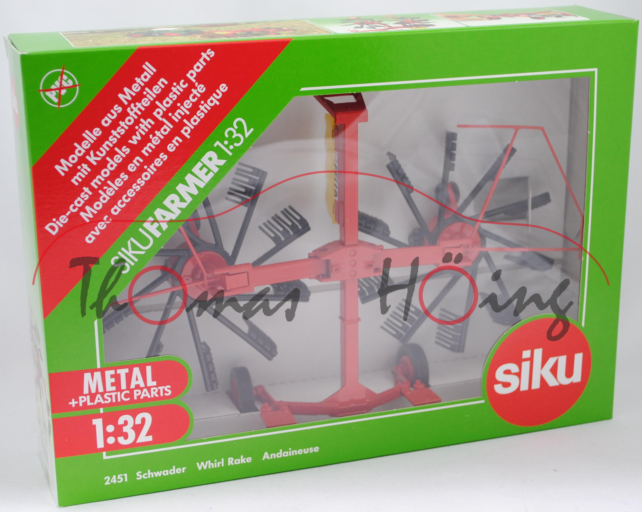 00000 FELLA Zweikreiselschwader mit Mittelschwadablage 801, verkehrsrot/zinkgelb/schwarz, FELLA, SIKU FARMER, 1:32, L16nmp (EAN 4006874024513)
