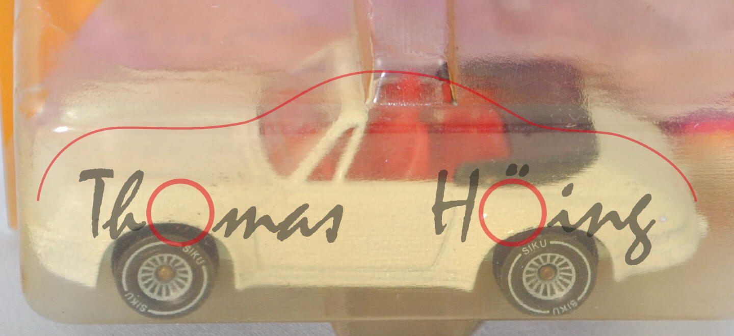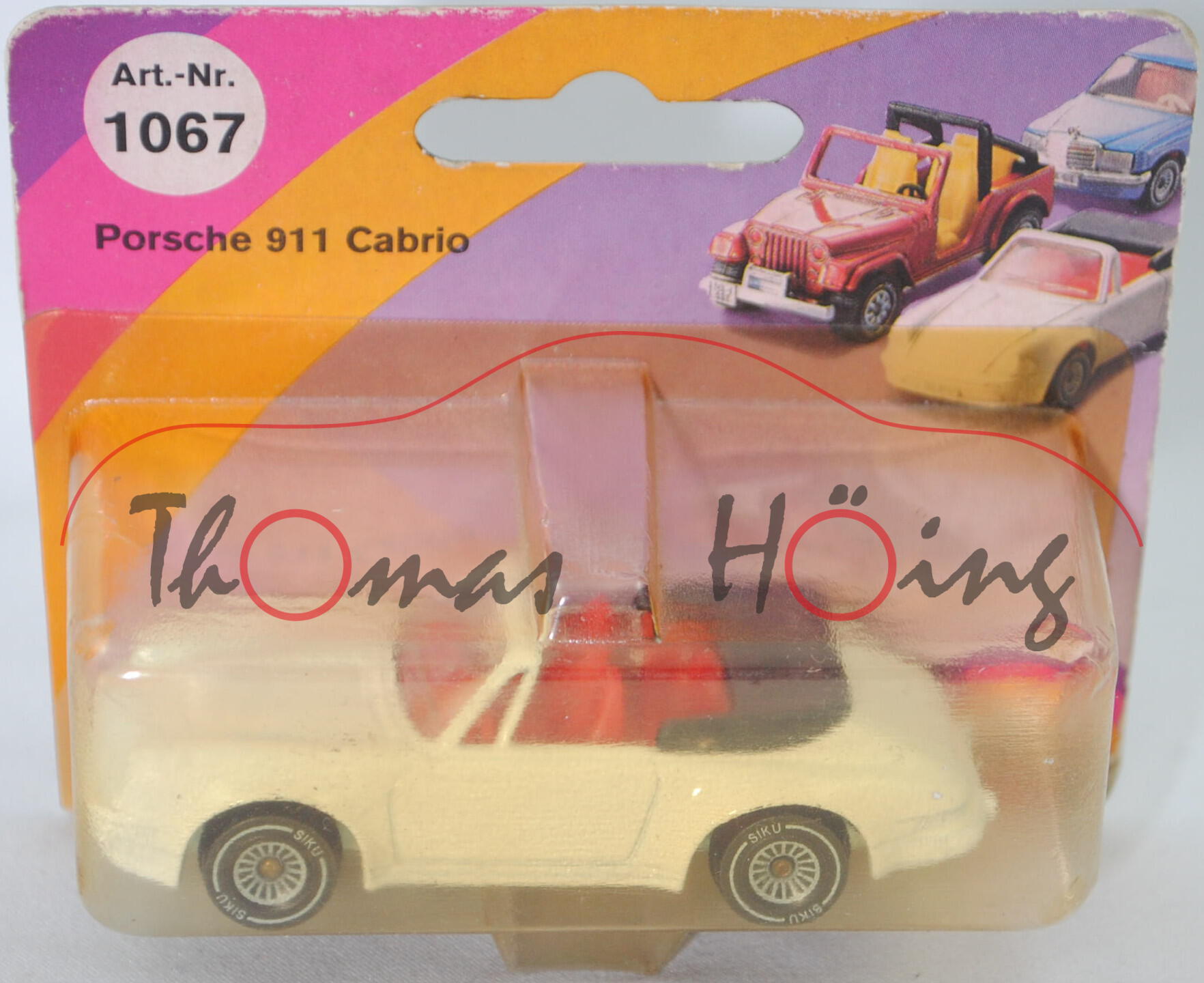 00000 Porsche 911 Carrera 3.2 Cabrio (G-Modell, Modell 1984-1986), reinweiß, innen verkehrsrot, Lenkrad verkehrsrot, Verdeck schwarz, Chassis chrom, Bpr. 1059/1067, W-Germ, B4, SIKU SUPER, ca. 1:54, P23 (Schachtel war offen, Schachtel vergilbt) (EAN 4006874010677)
