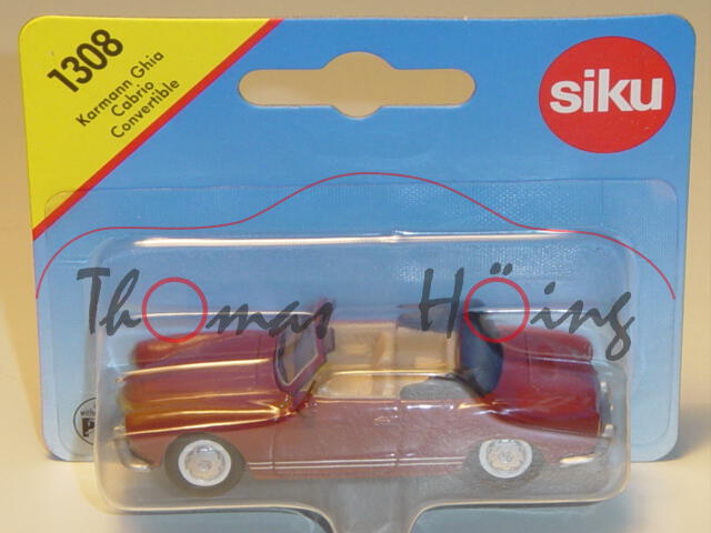 00402 SSC VW Karmann Ghia Cabrio (Typ 14, Modell 1966-1970), oxydrot, innen hell-beige, Lenkrad hell-beige, Druck Gratismodell / 2008 und SSC-Logo in silber auf dem Chassis, Verdeck schwarz, B39 silbergrau mit Weißwandreifen, SIKU SUPER, ca. 1:55, P29a (Sondermodell Siku-Sammler-Club e.V., Limited Edition) (EAN 4006874013081)