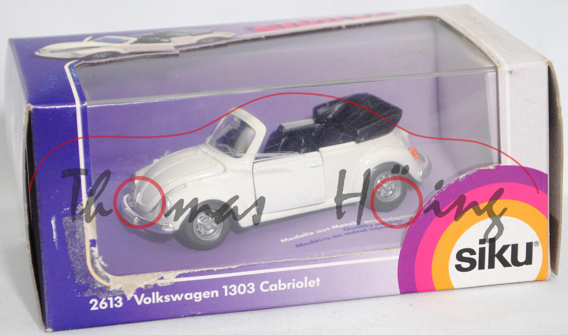00000 VW Käfer 1303 Cabriolet (Typ 15, Modell 1972-1974), cremeweiß, innen schwarz, Lenkrad schwarz, Armaturenbrett schwarz, Felgen silbergrau (Hersteller: KPZ KRONPRINZ), SIKU 1:43, ca. 1:43, L14a (Vitrinenmodell, Schachtel mit Lagerspuren) (EAN 4006874026135)